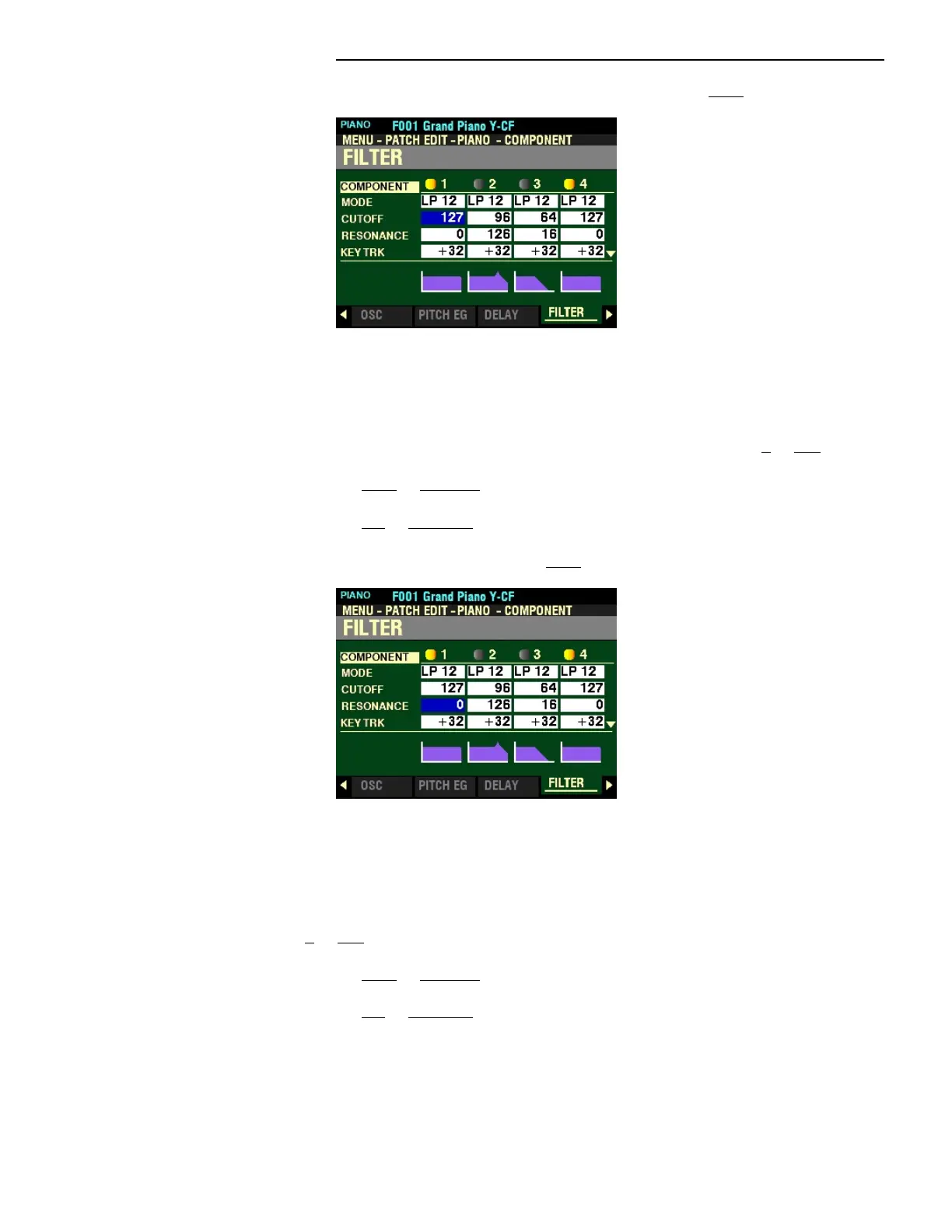This Parameter allows you to adjust the Cutoff Frequency of the Filter. You can select from 0 to 127.