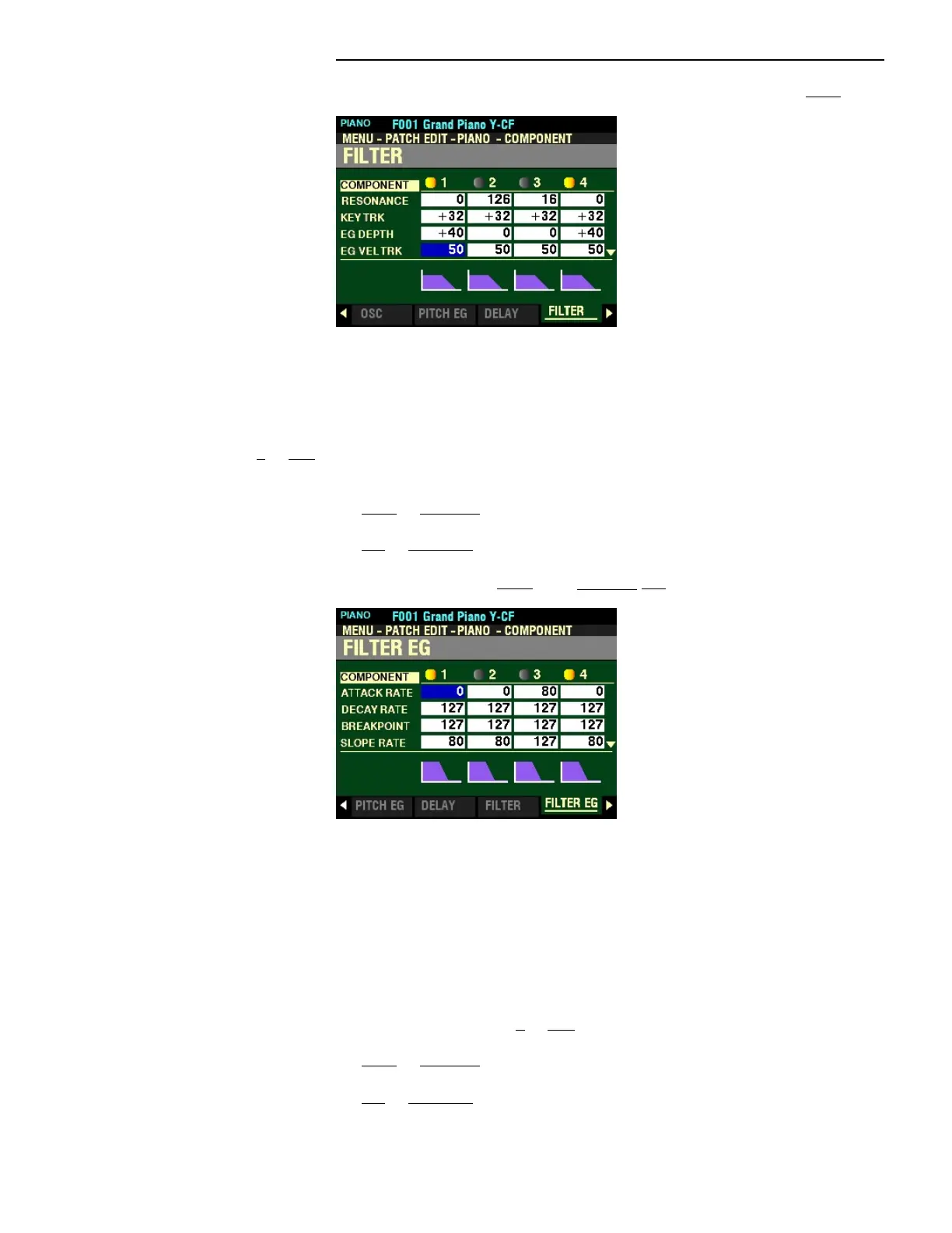 This Parameter allows you to adjust the amount of the Filter Envelope by Note “ON” or “OFF” velocities.