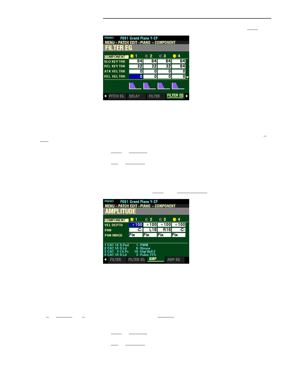 NOTE: The Velocity Parameter in the COMBINATION Edit Menu must be “ON” (values 1 ~ 4) in order to hear