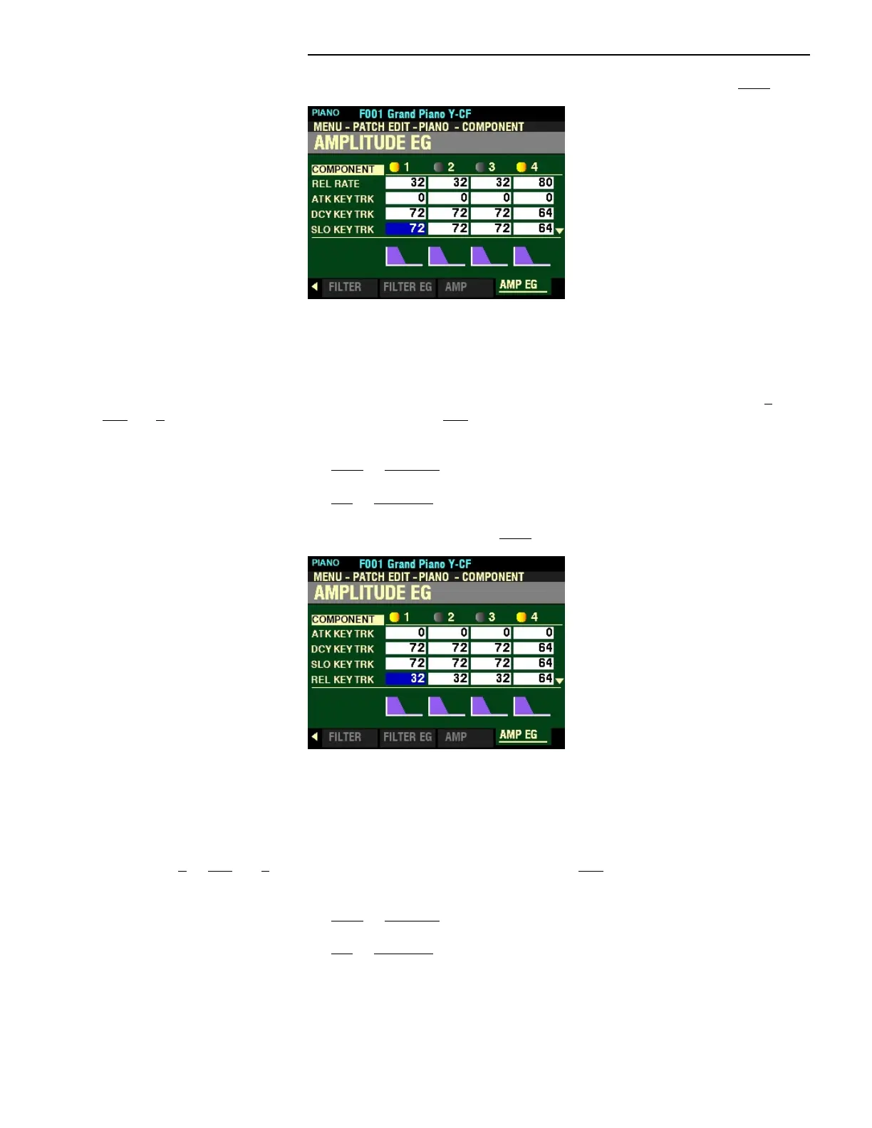 select from 0 to 127. At 0 each note will sound the same Amplitude EG. 127 will cause the envelope to