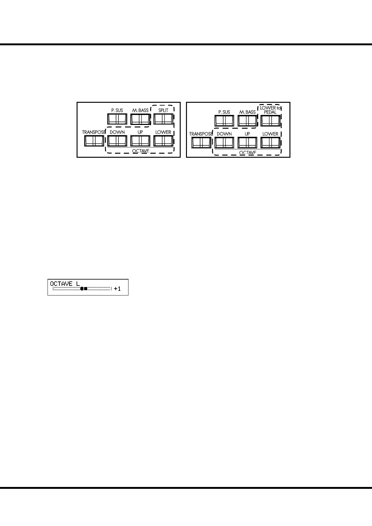 To lower UPPER by one octave, press the [DOWN] button.