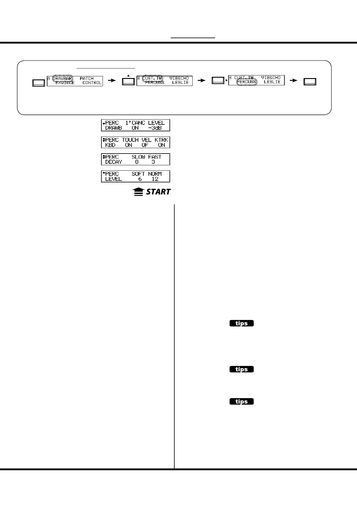 Controls the percussion volume levels. e Normal level is