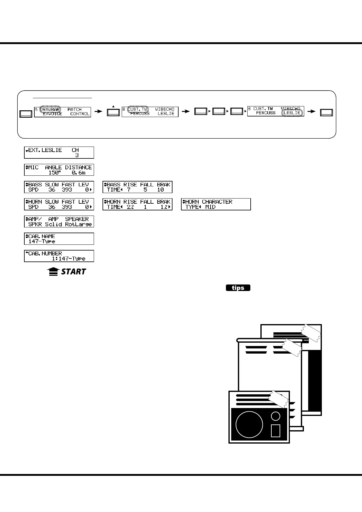 In this mode, the settings are made for the built-in Leslie Eff ect and