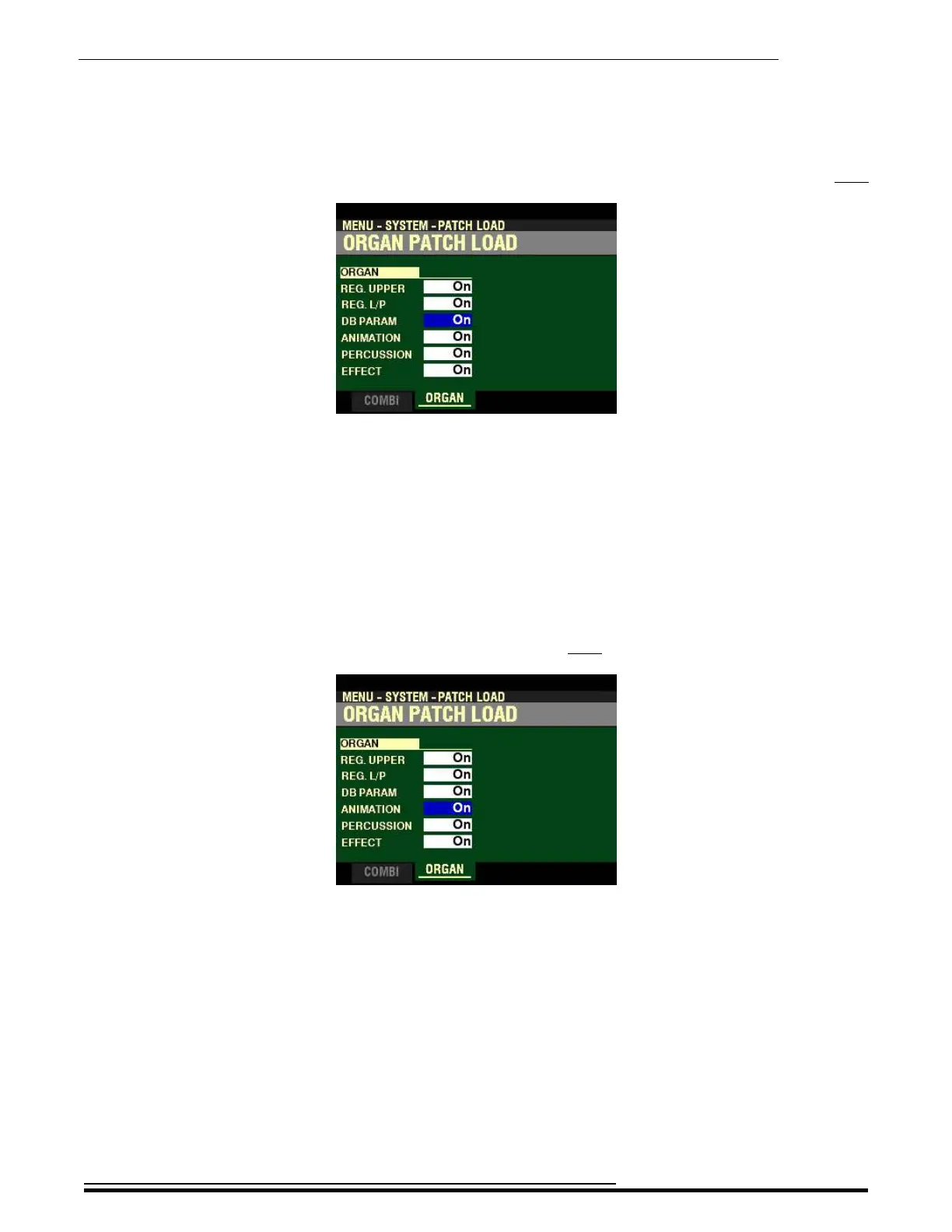Drawbar Registrations, Contact Parameters and Sustain Parameters) to change when you select an ORGAN