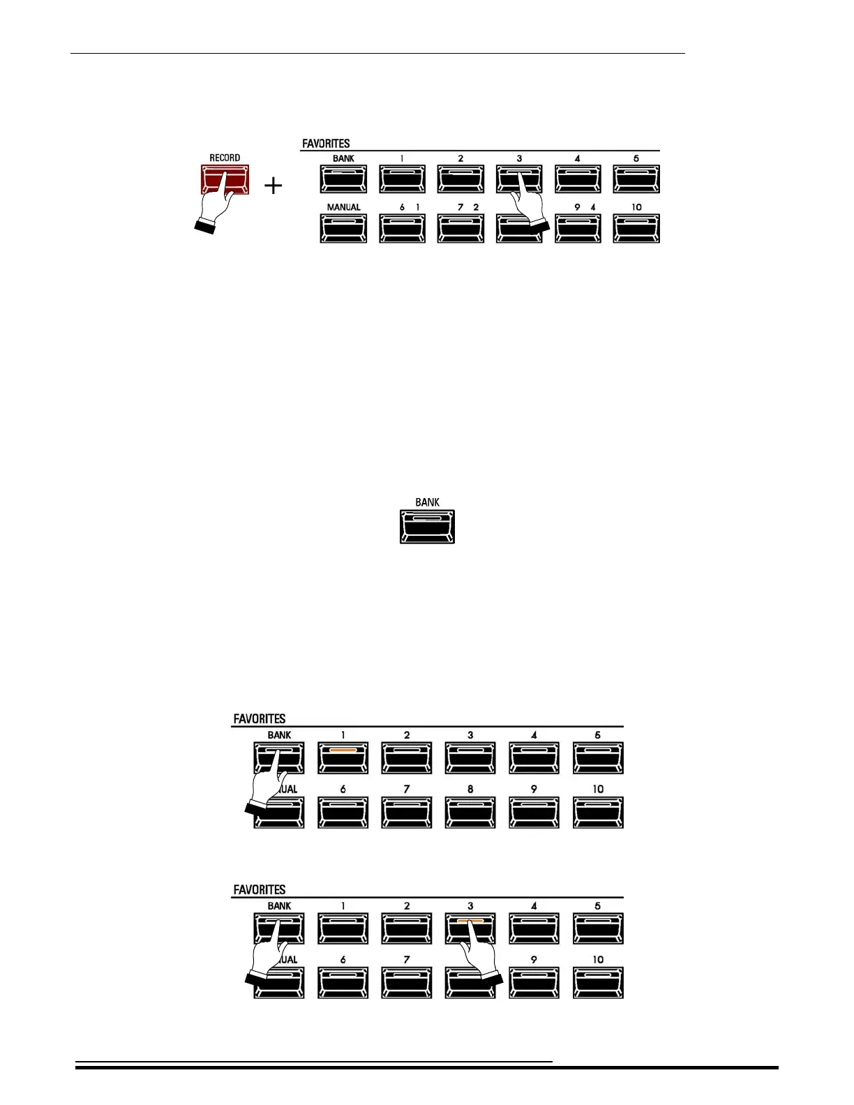 1. Press and Hold the BANK button. A FAVORITE button will light showing which Favorite Bank