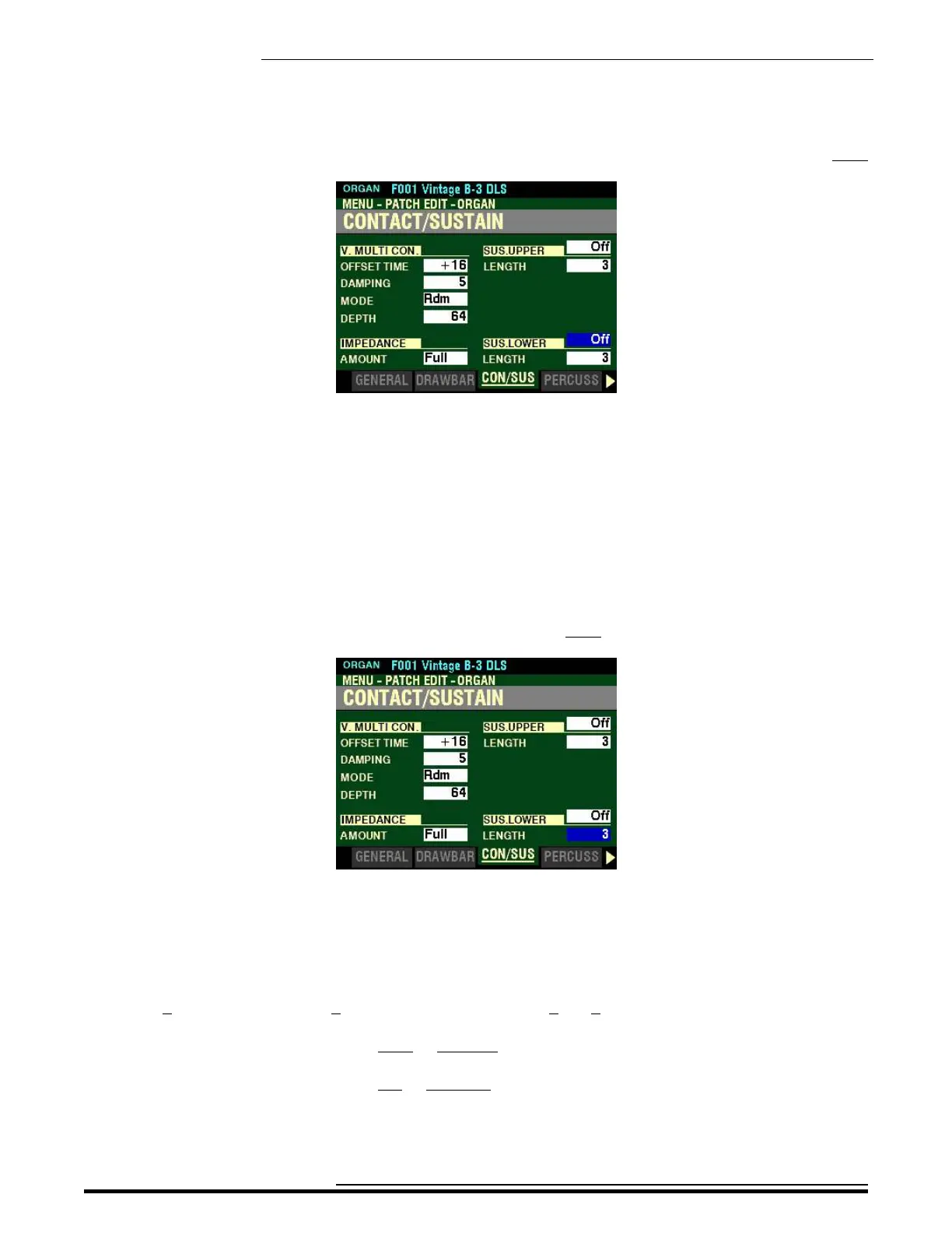 This Parameter allows you to turn Sustain “ON” or “OFF” on the LOWER Part.