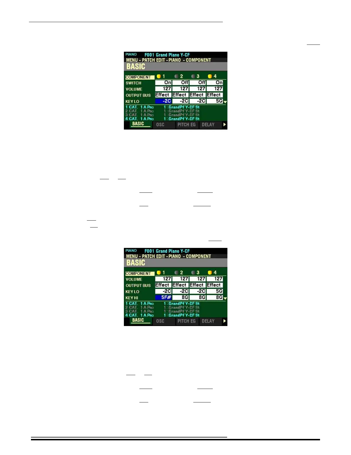 This Parameter allows you to adjust the lower sounding range of the selected Component by note number.