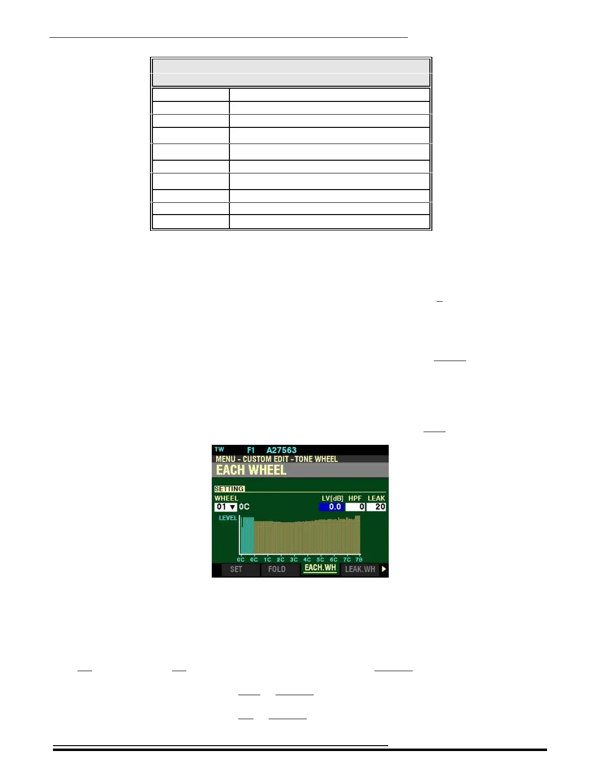 LV(dB) - Tone Wheel Level