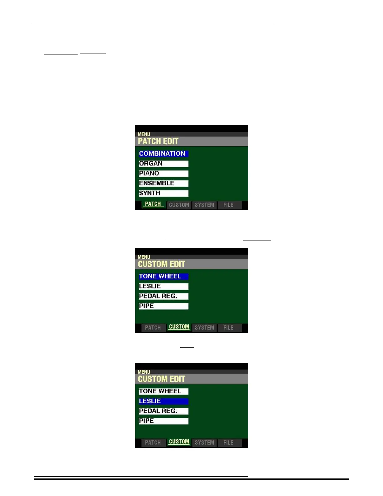 2. Press the PAGE “u” button once. You are now in the CUSTOM EDIT FUNCTION Mode.