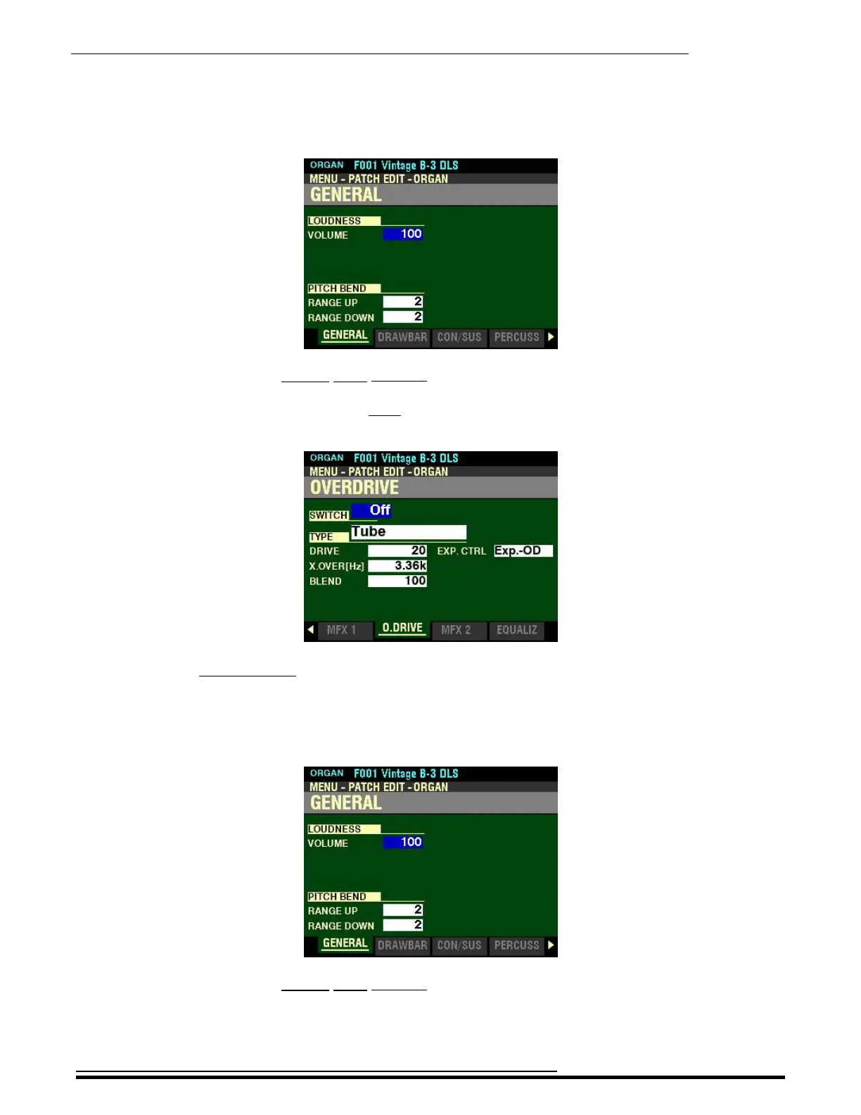 t Accessing the OVERDRIVE FUNCTION Mode Page for the ORGAN Voice Section using the