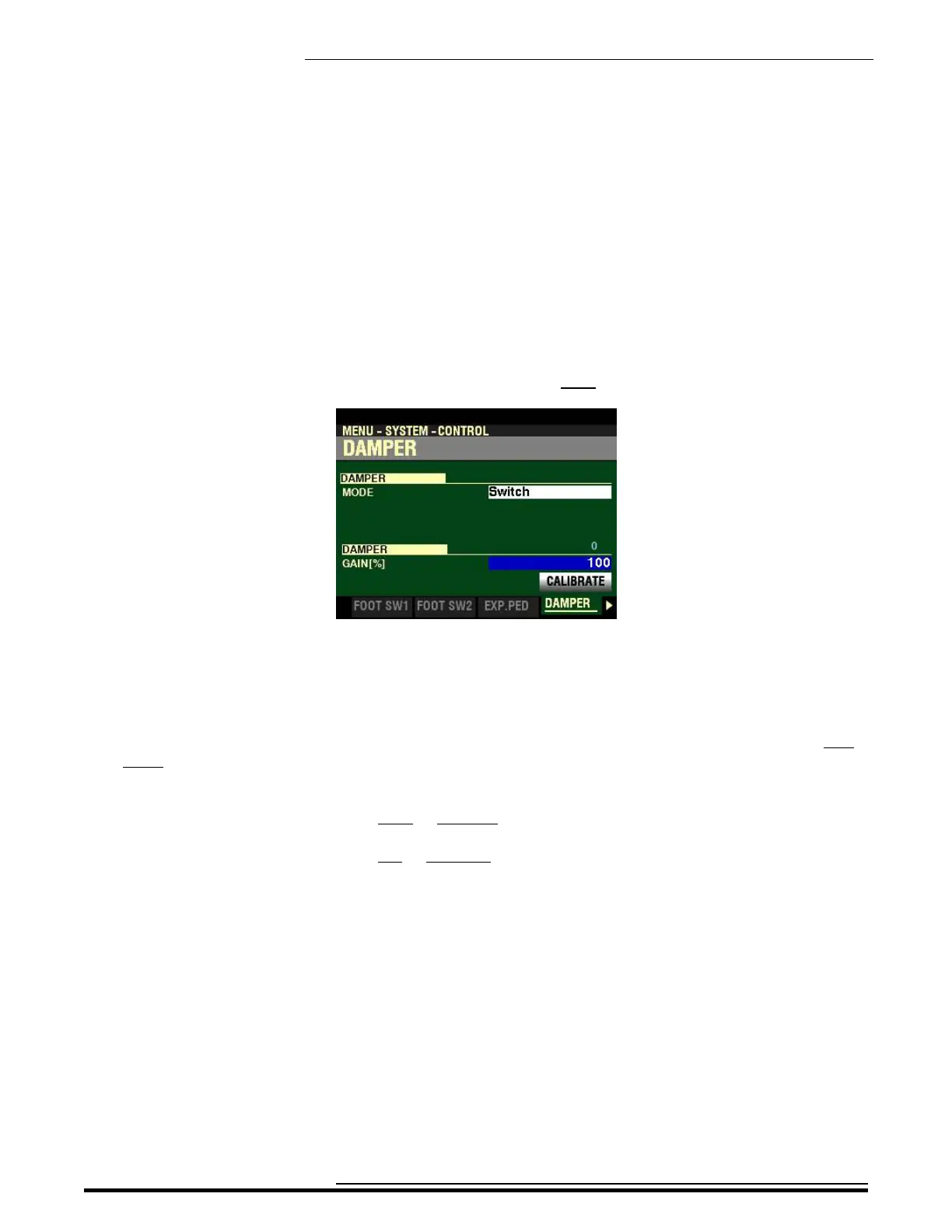 This Parameter allows you to adjust the range of a connected Damper Pedal. You can select from 70% to