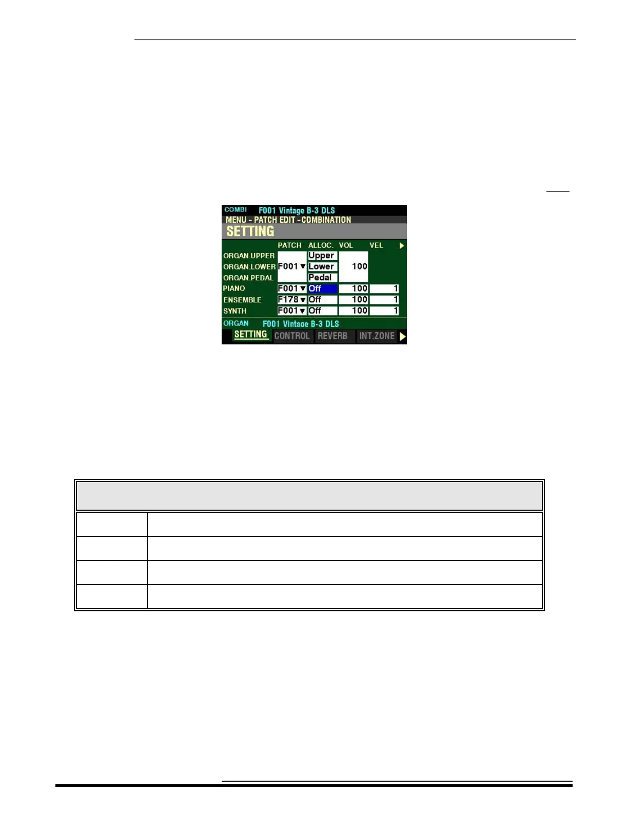 Upper The selected Voice Section will sound from the UPPER Keyboard. The ALLOCATE button