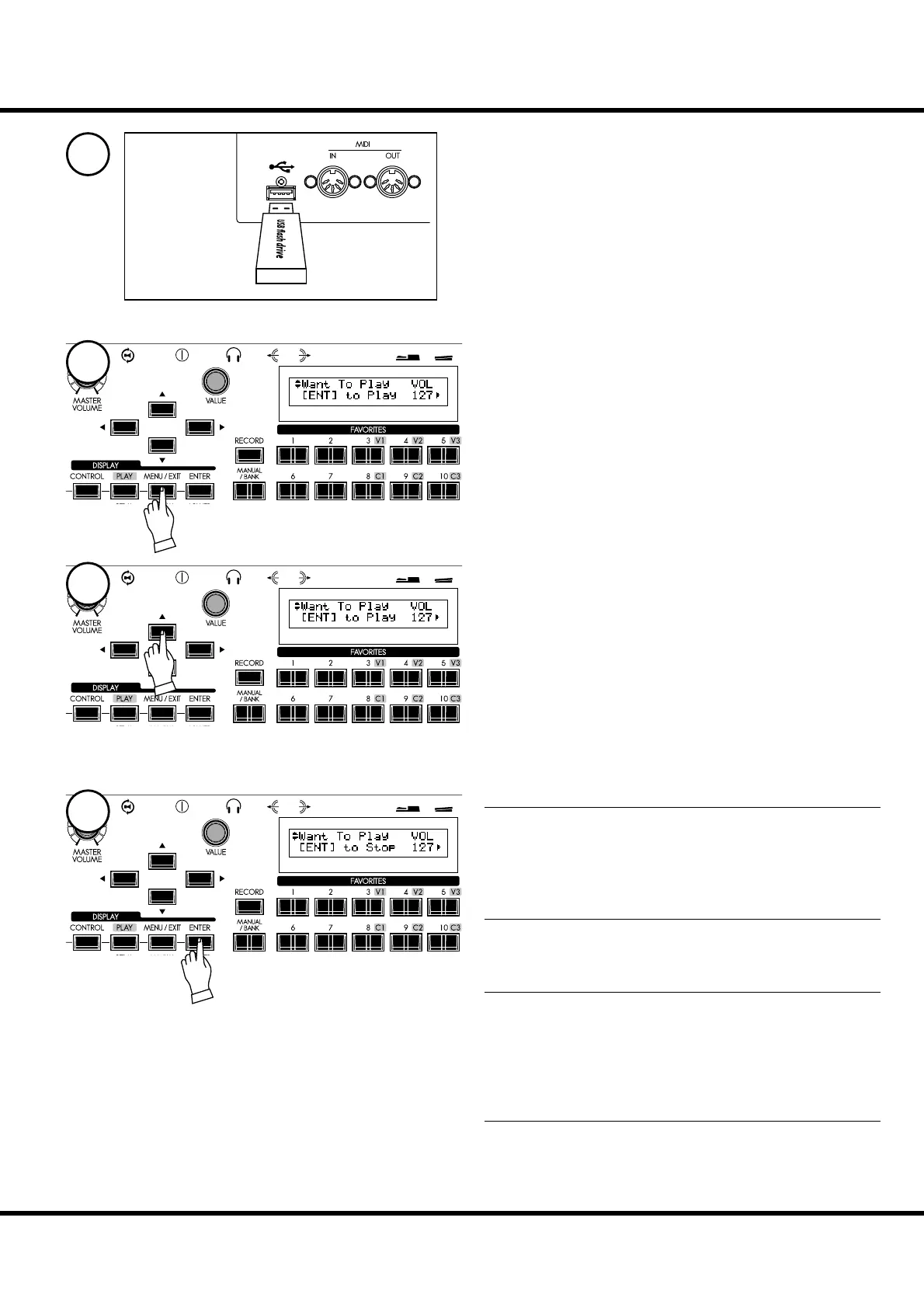 Turn the [VALUE] knob to adjust the play volume in this