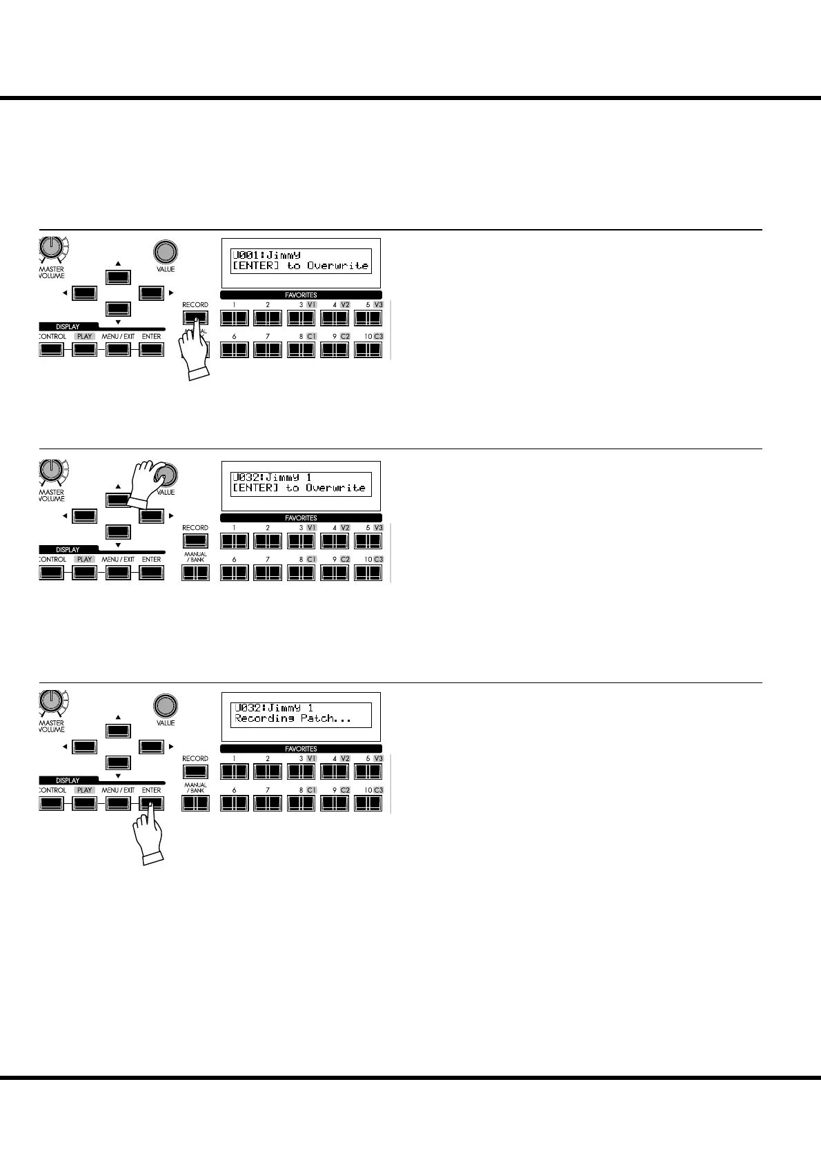 All the previous settings can be recorded to any Patch within the range of U001 to U100.