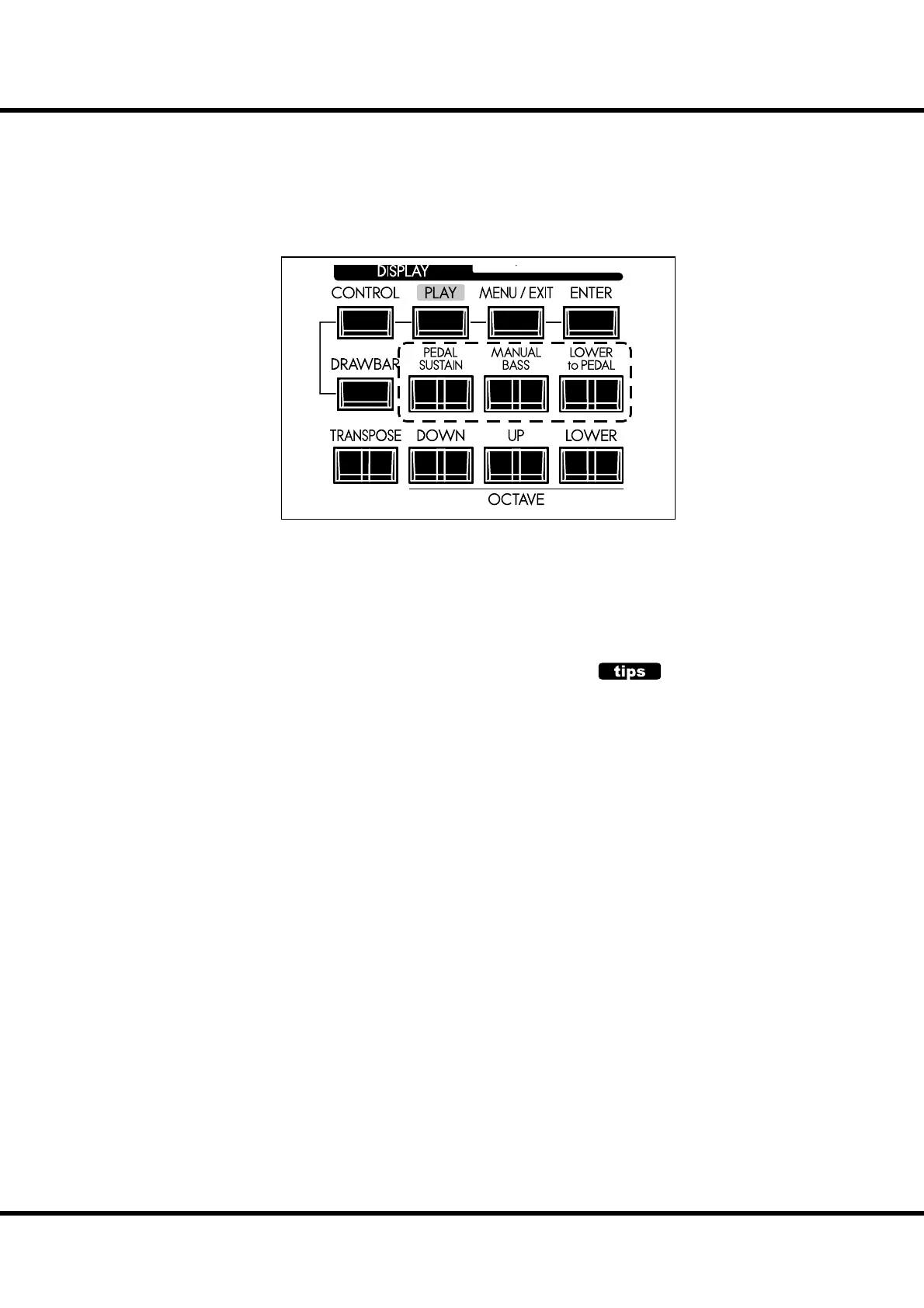 Using the Lower keyboard, you can play the Pedal part together (Manual Bass).