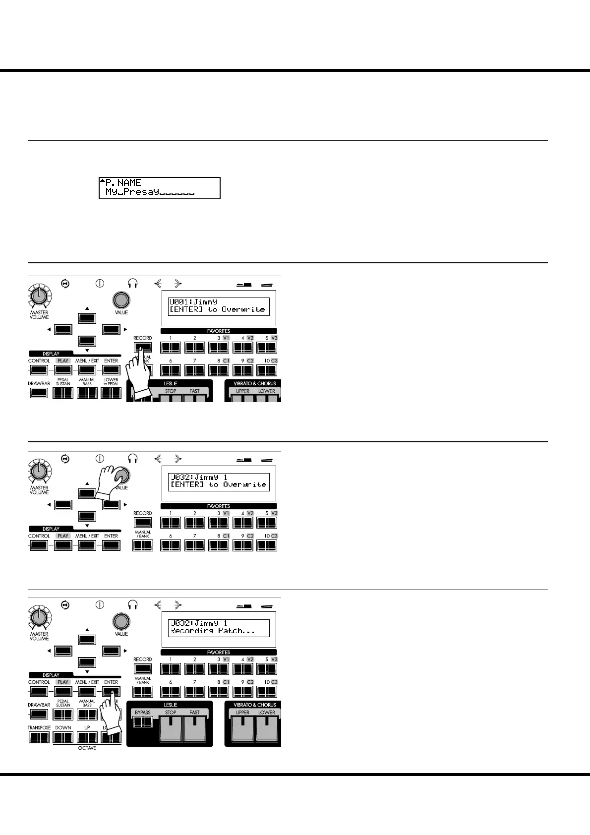 Select the Patch number you wish to record with the [VALUE]