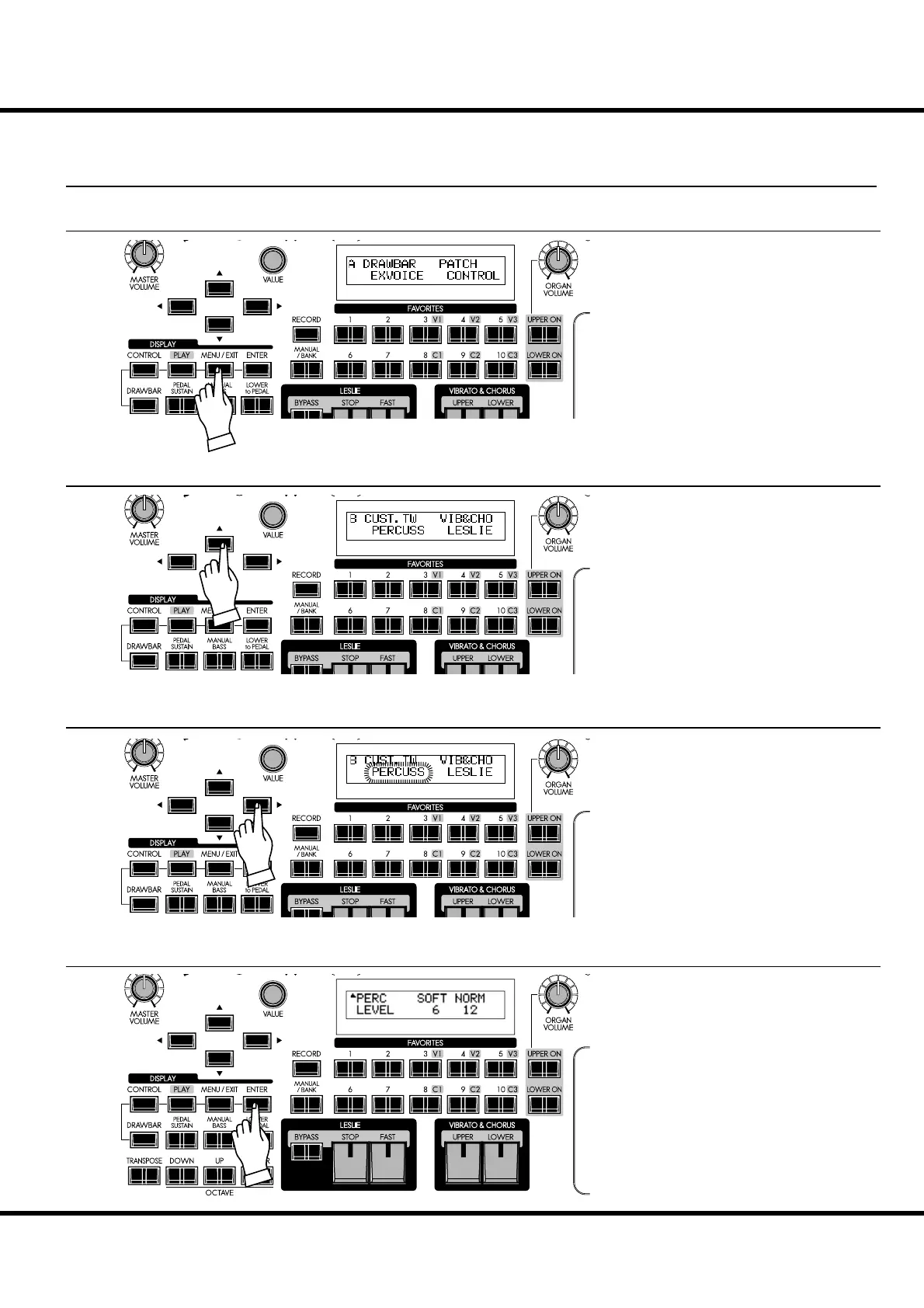 ADJUST THE [FAST] PERCUSSION DECAY TIME “FASTER”