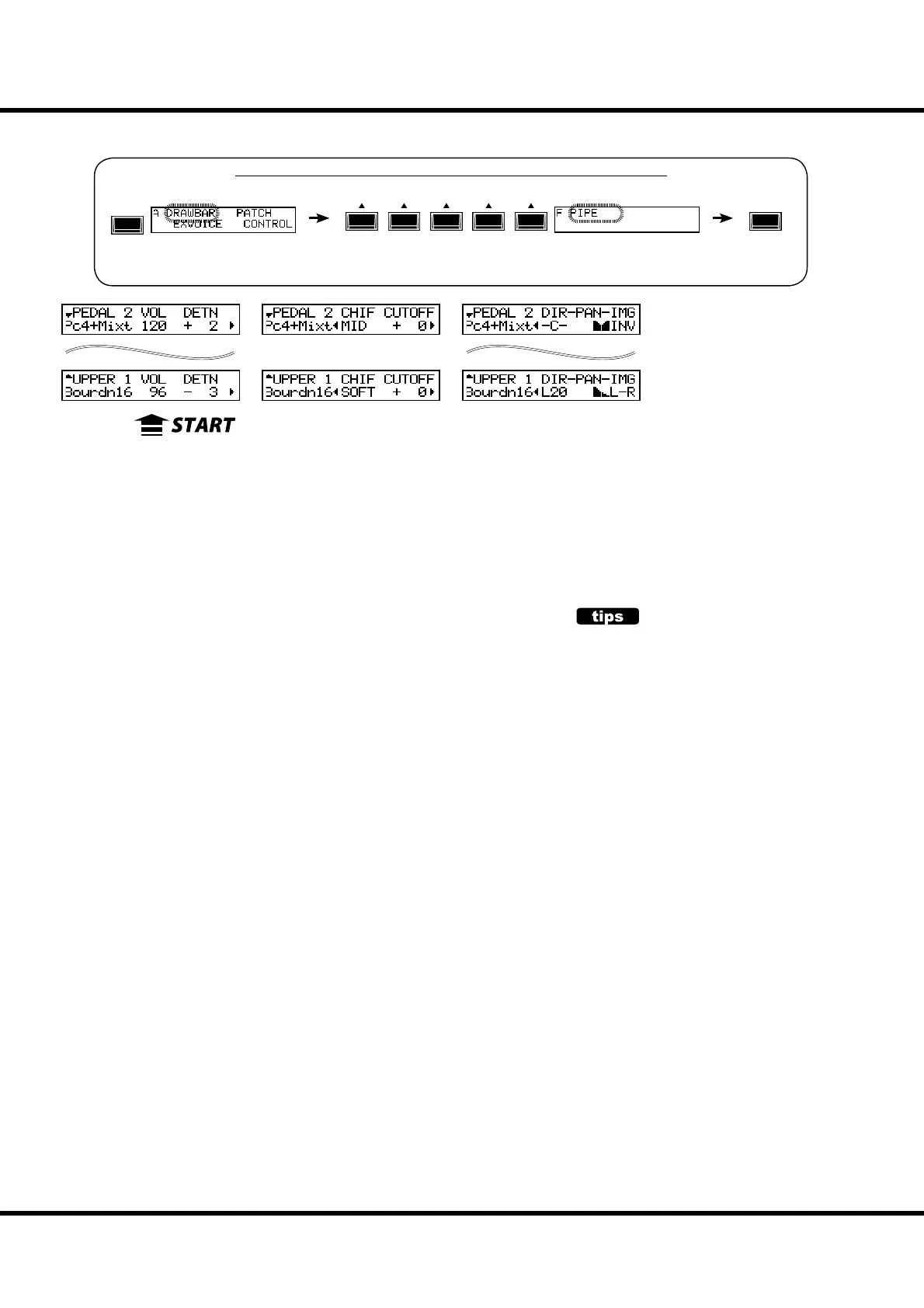 NOTE: The Reed Pipes (Hautbois 8´ and Trompette 8´) are not a ected by this parameter.