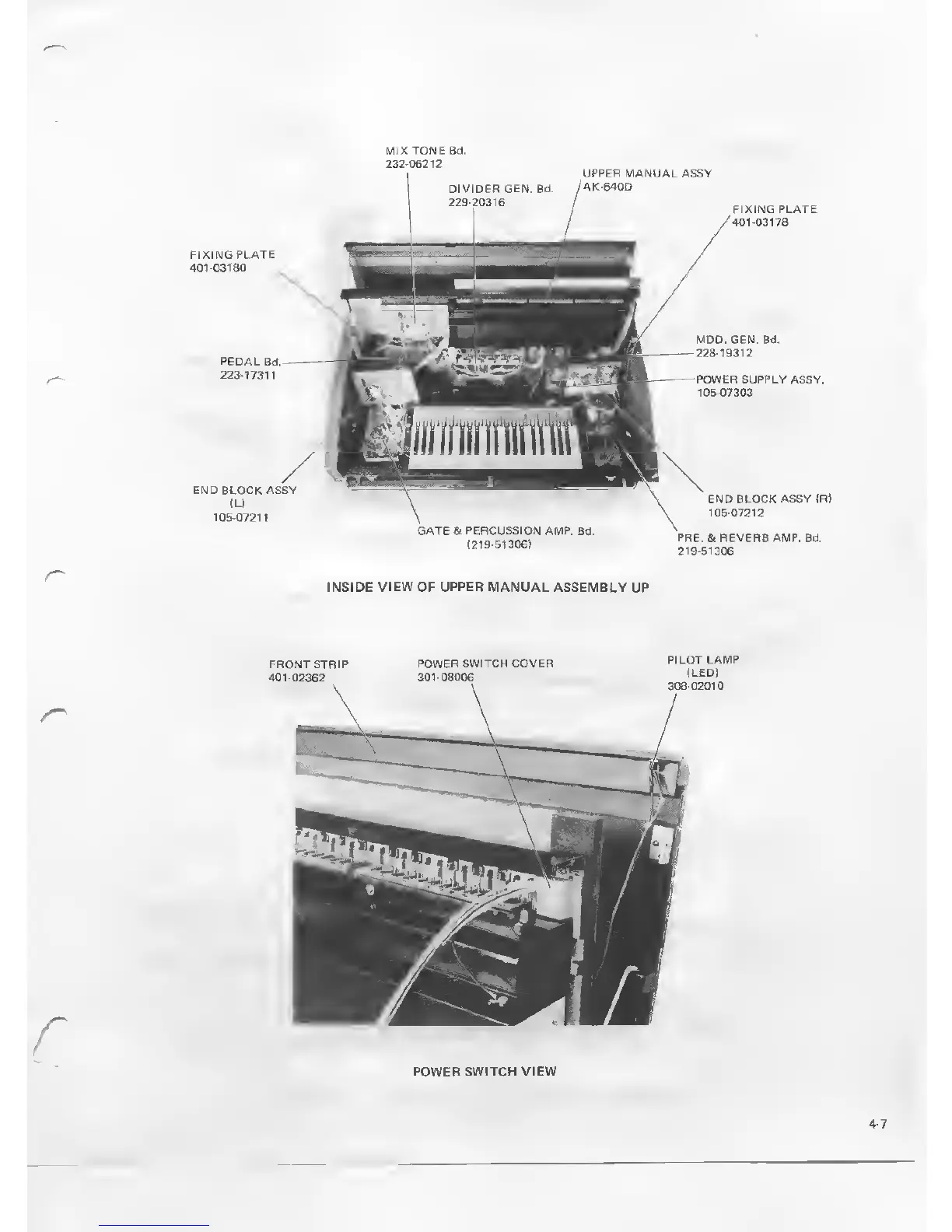 Hammond X-5 - Inside View of Upper Manual Assembly up; Power Switch View