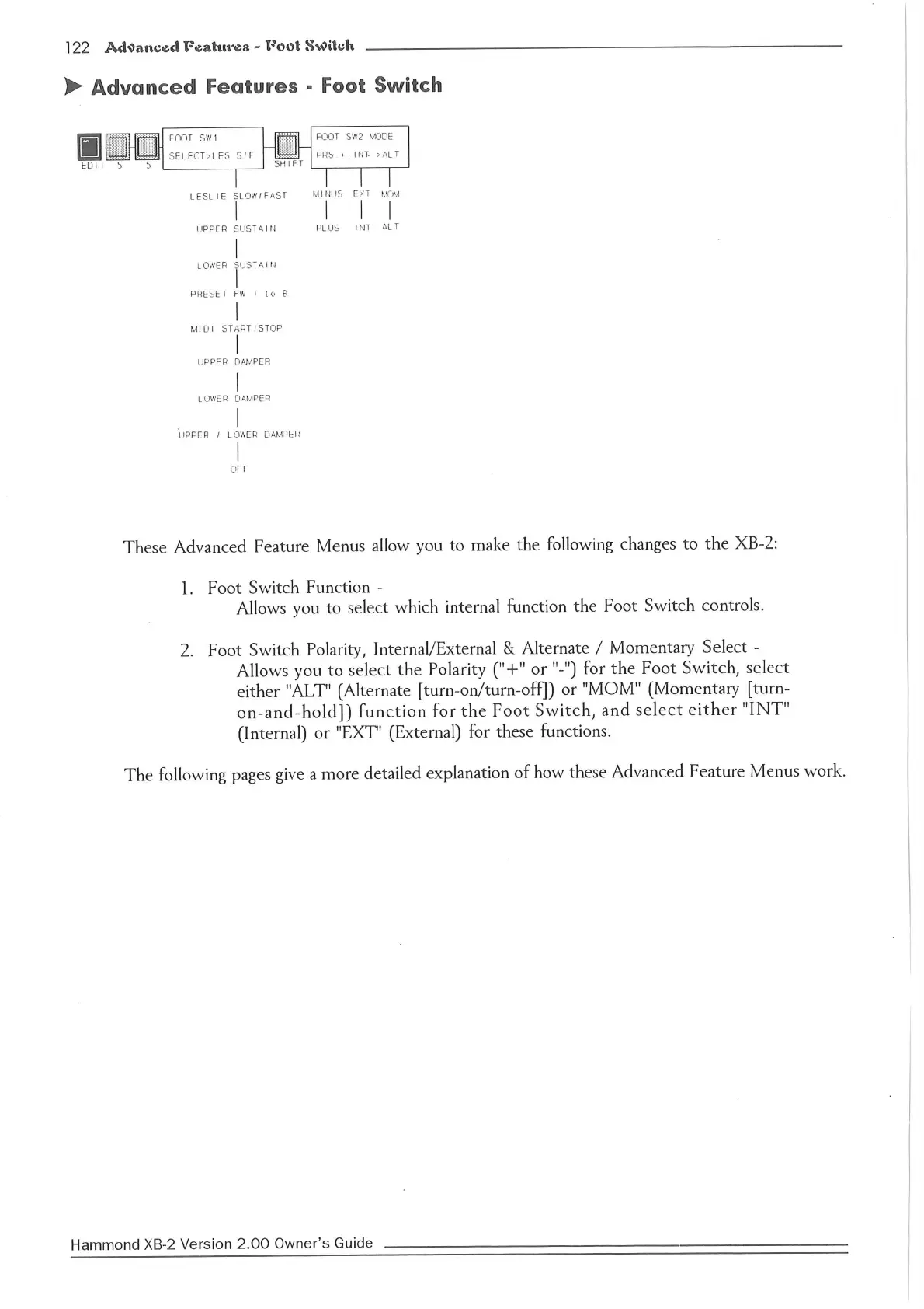 Hammond XB2 - Advanced Features: Foot Switch