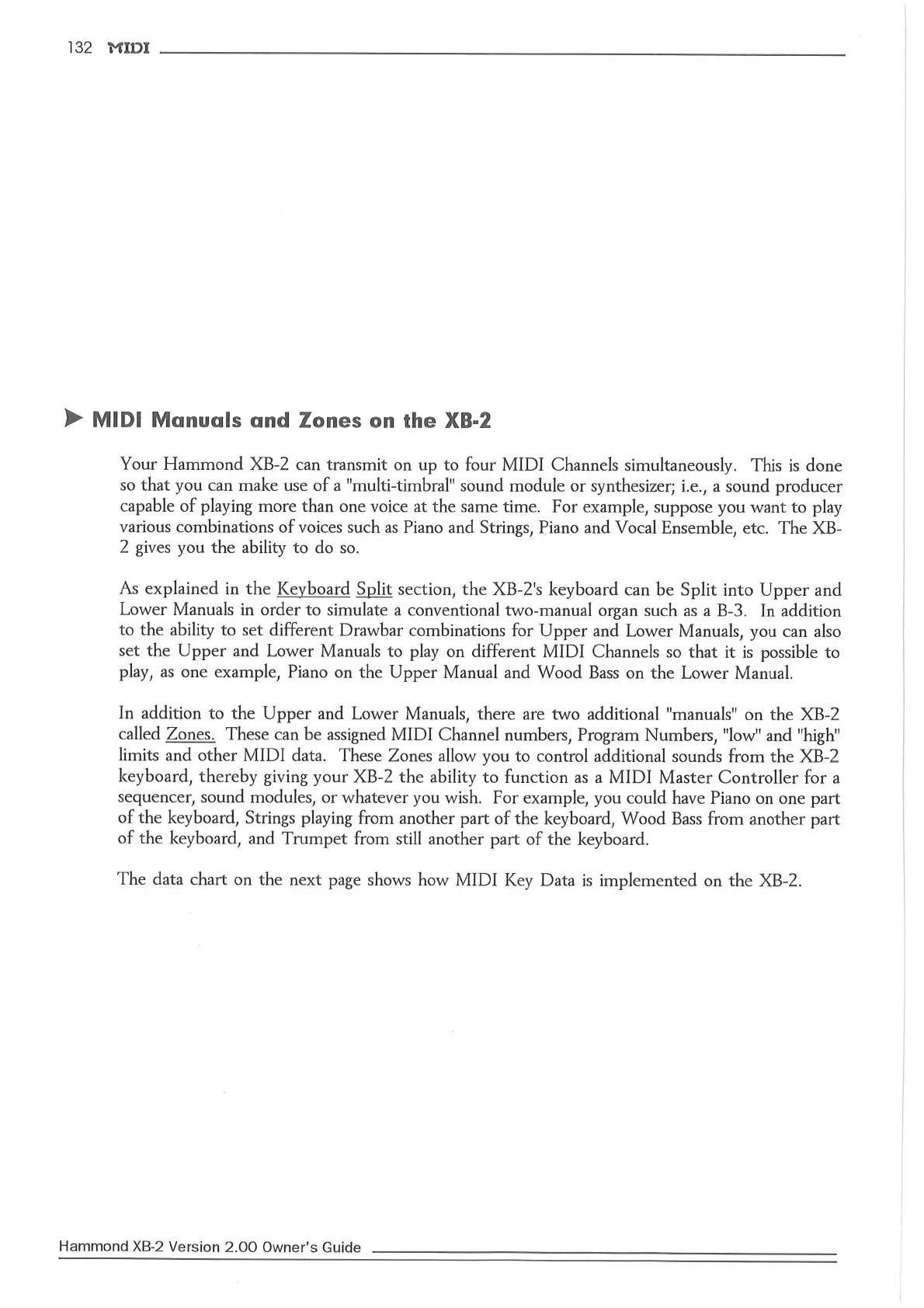 Hammond XB2 - MIDI Manuals and Zones on the XB-2