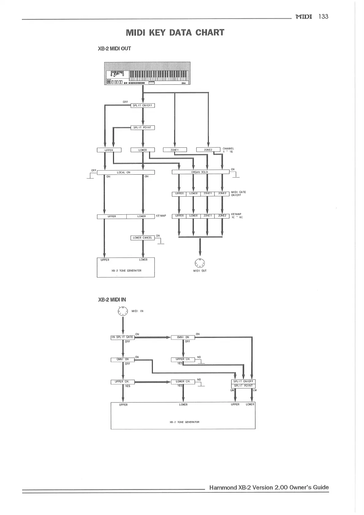 Hammond XB2 - MIDI Key Data Chart