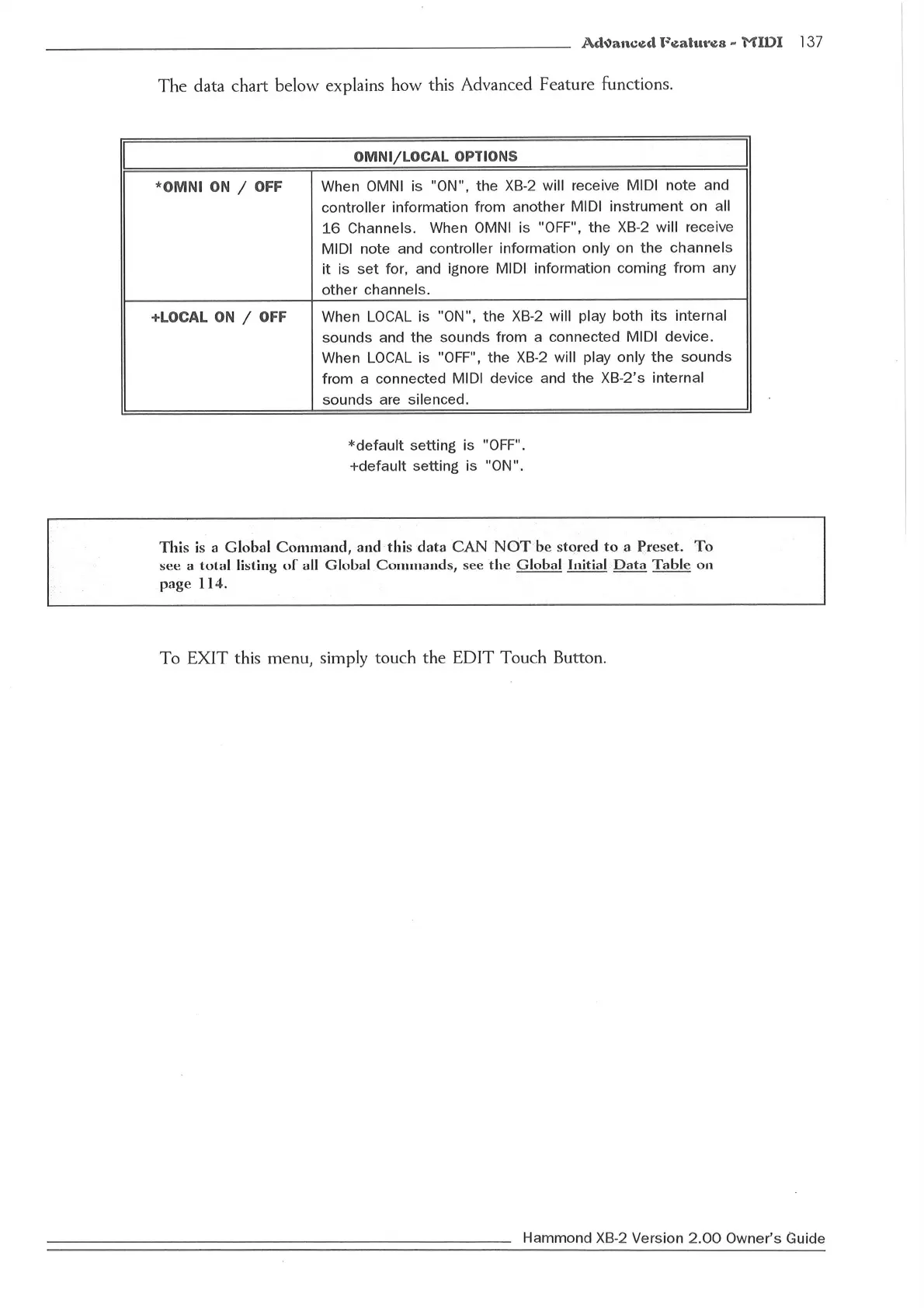 Hammond XB2 - Omni;Local Options