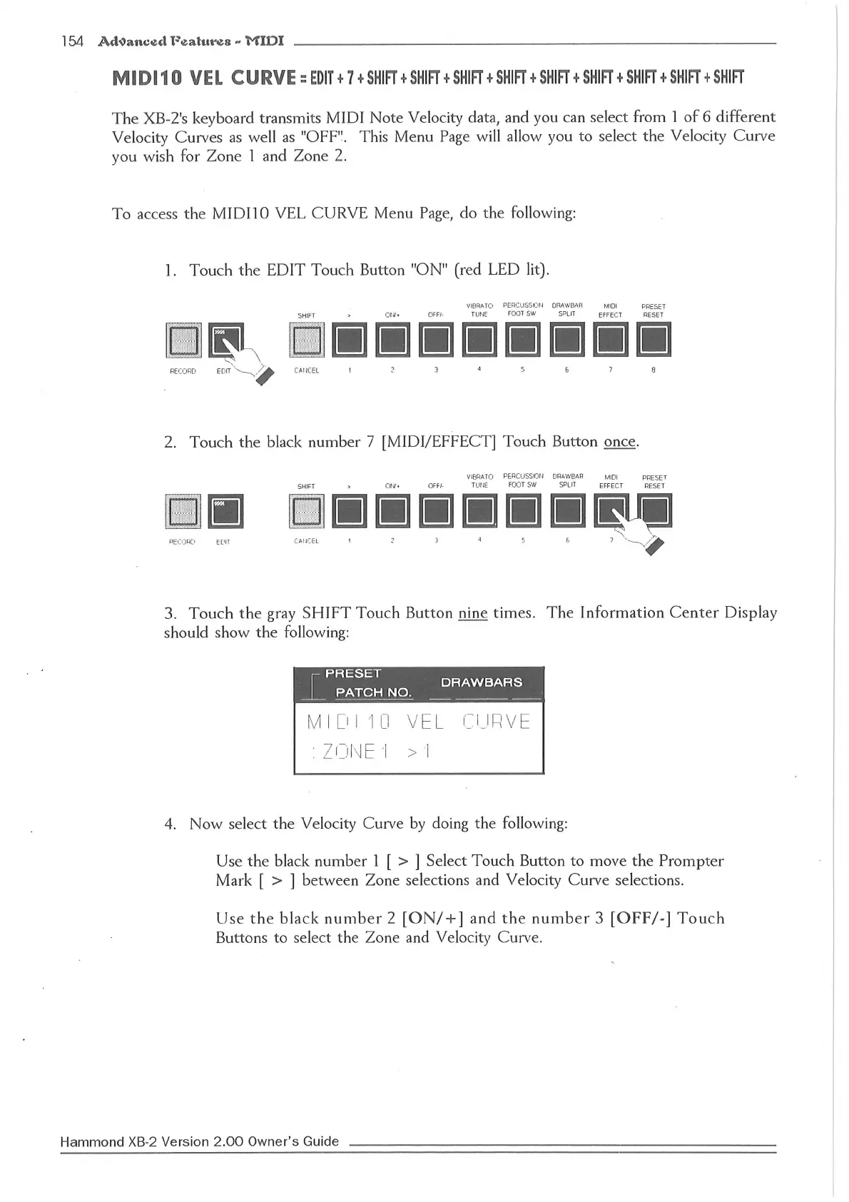 Hammond XB2 - MIDI10 VEL Curve