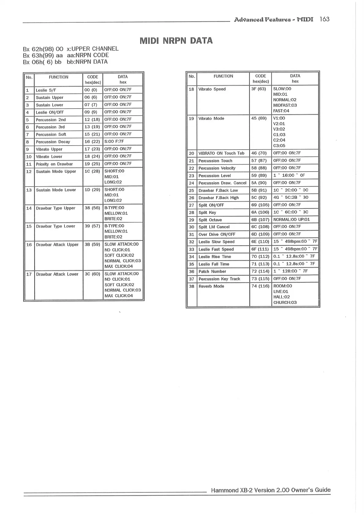 Hammond XB2 - MIDI NRPN Data