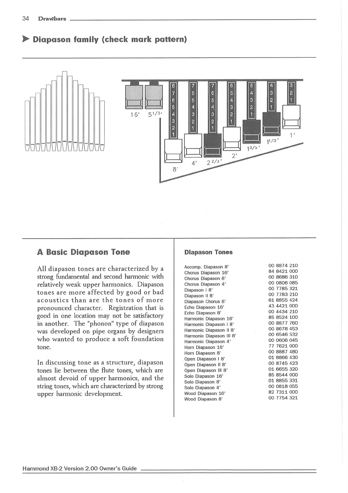 Hammond XB2 - Diapason Family (Check Mark Pattern); A Basic Diapason Tone