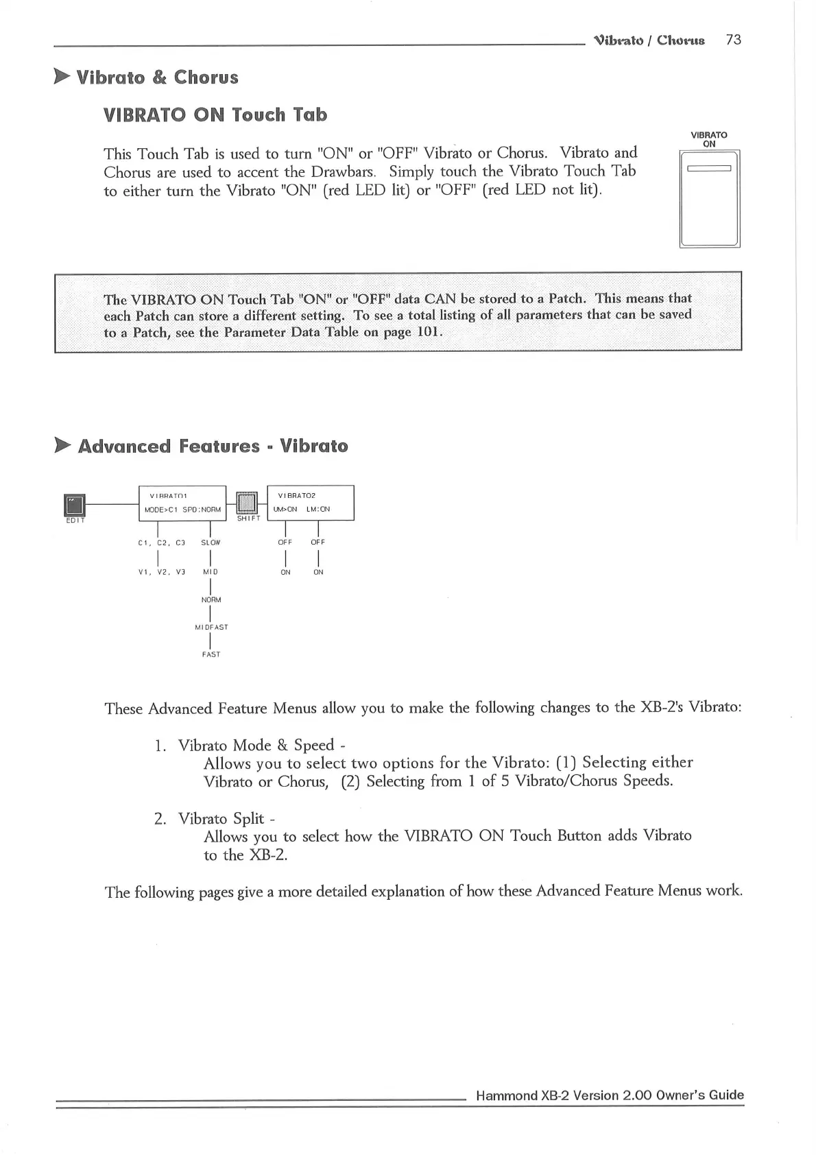 Hammond XB2 - Vibrato on Touch Tab; Advanced Features: Vibrato