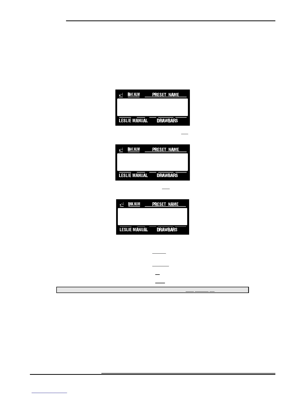 This Advanced Feature allows you to change the overall sound of the Drawbars. For the Upper and Lower Manuals, you