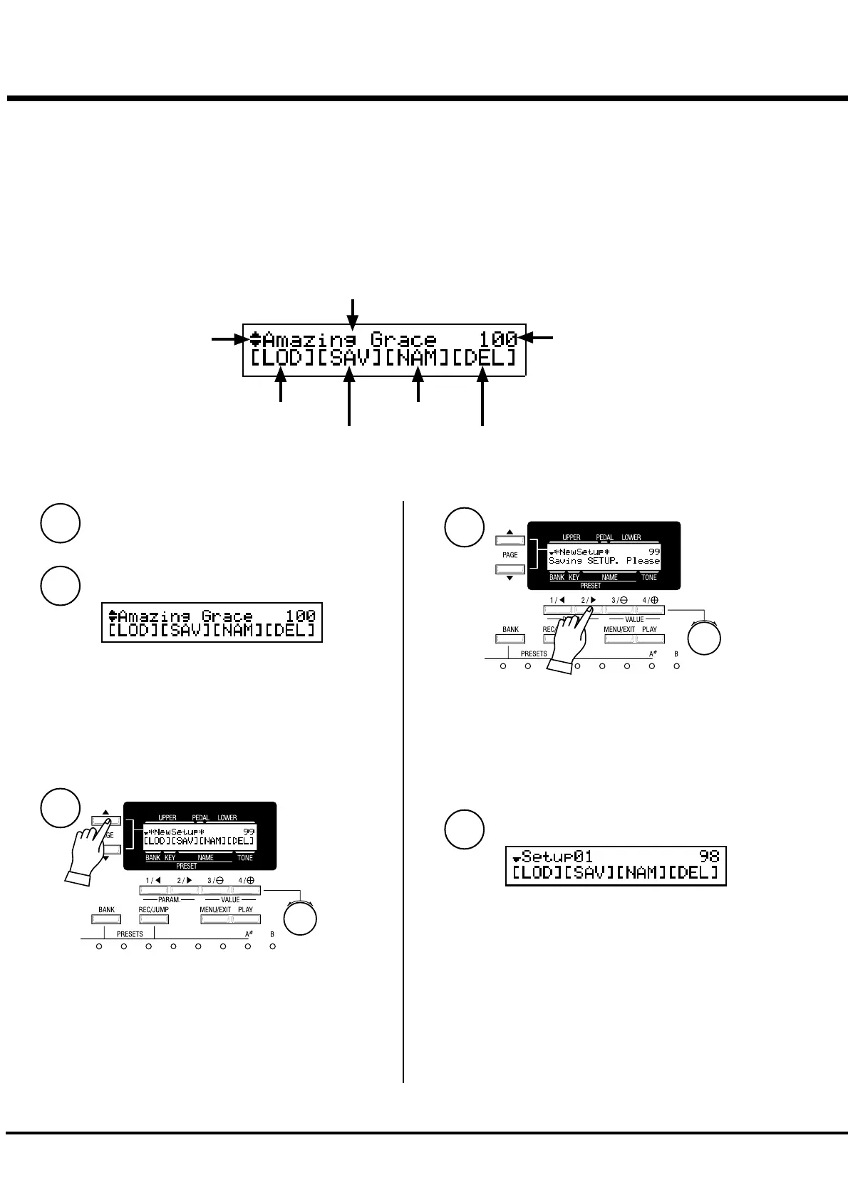 Select the SET UP NAME “NewSetup” by the [PAGE]
