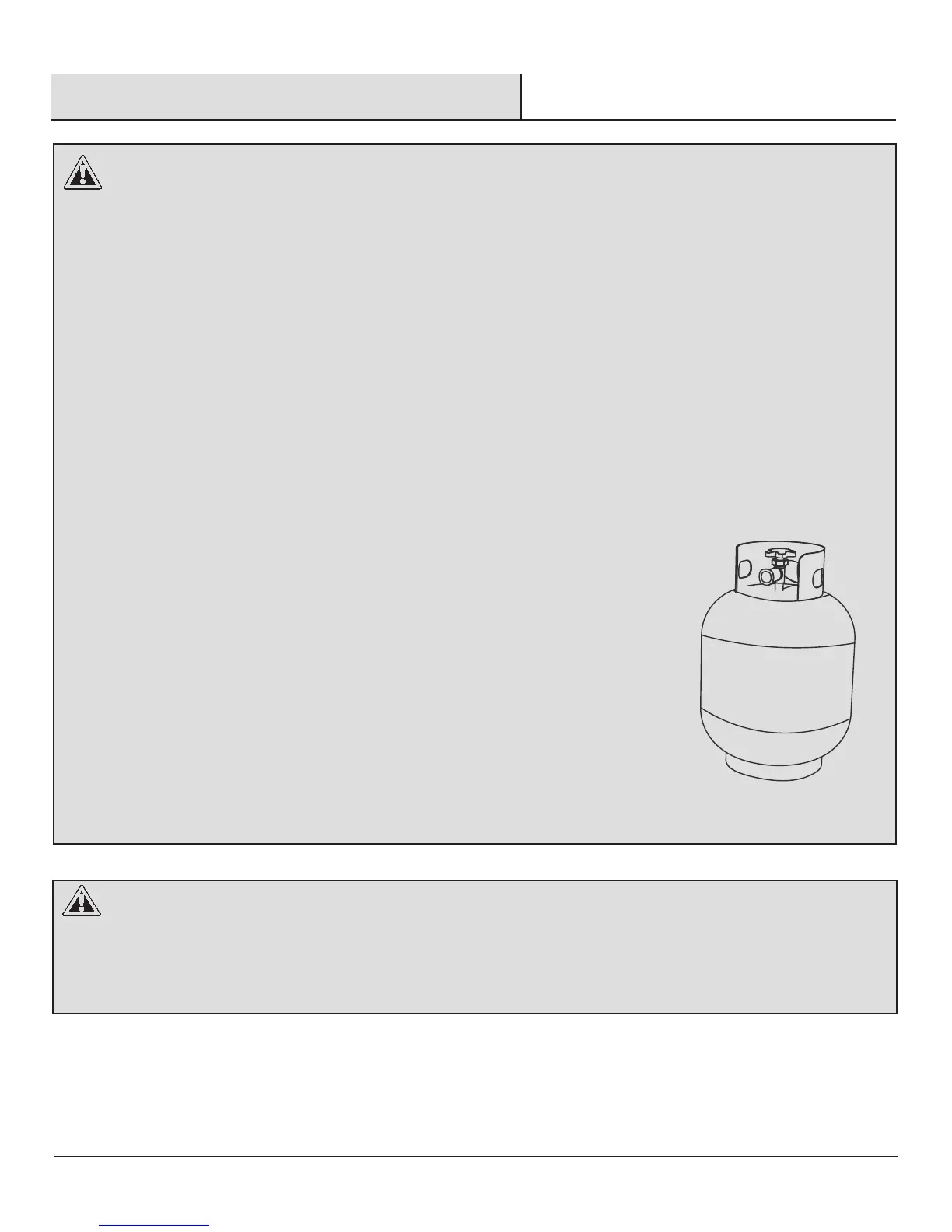 A dented, rusted, or damaged propane cylinder may be hazardous and should be checked by your cylinder supplier.
