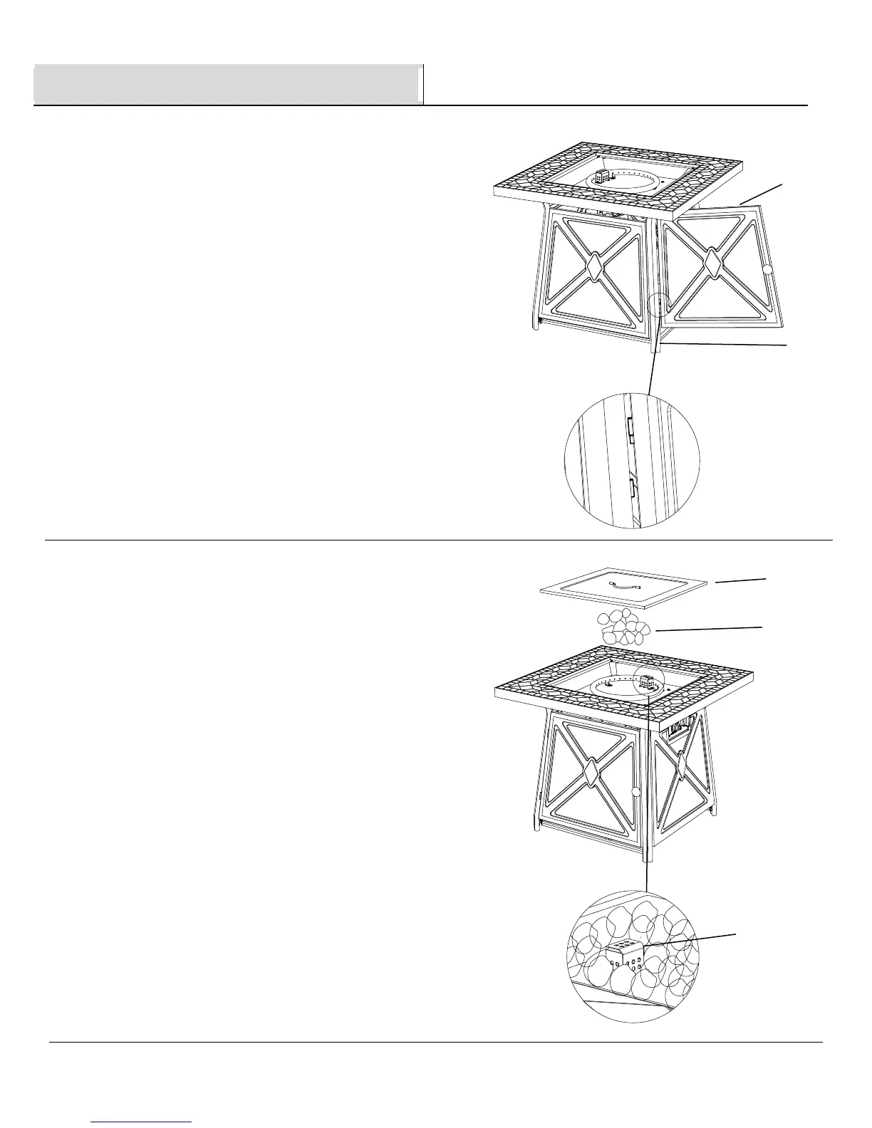 □ Place the lava rock (B) into the fire bowl. Ensure lava