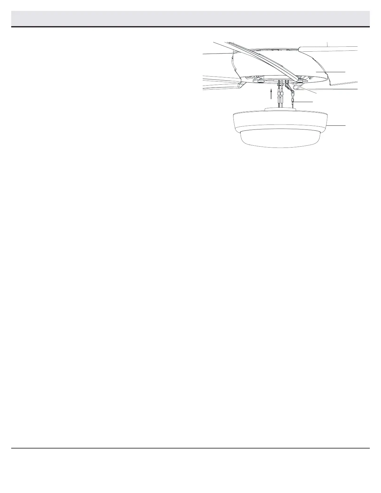 □ Push the light kit assembly (G) up to the motor assembly (E)