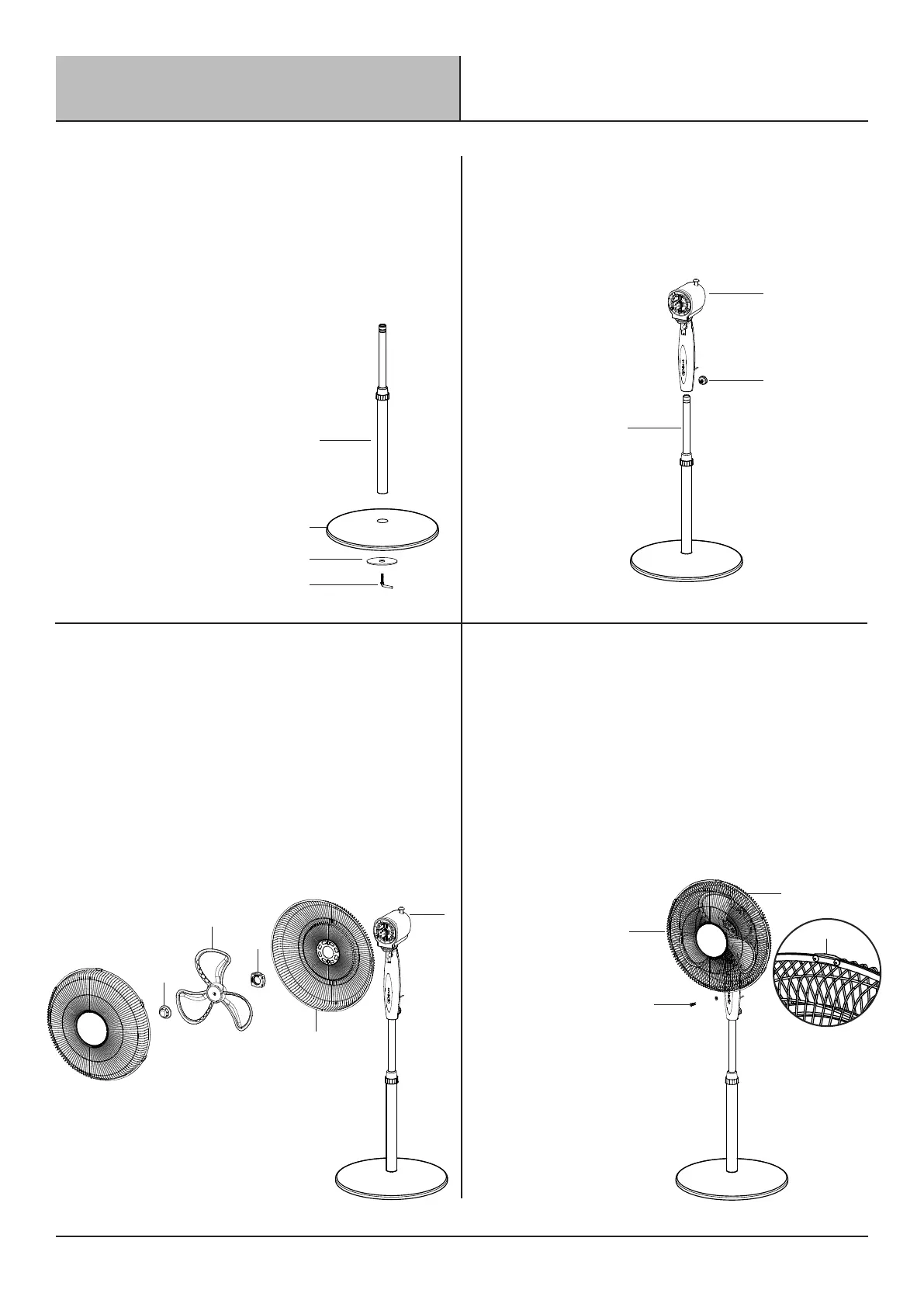 □ Secure fan blade to motor shaft with the Blade Cap (D).