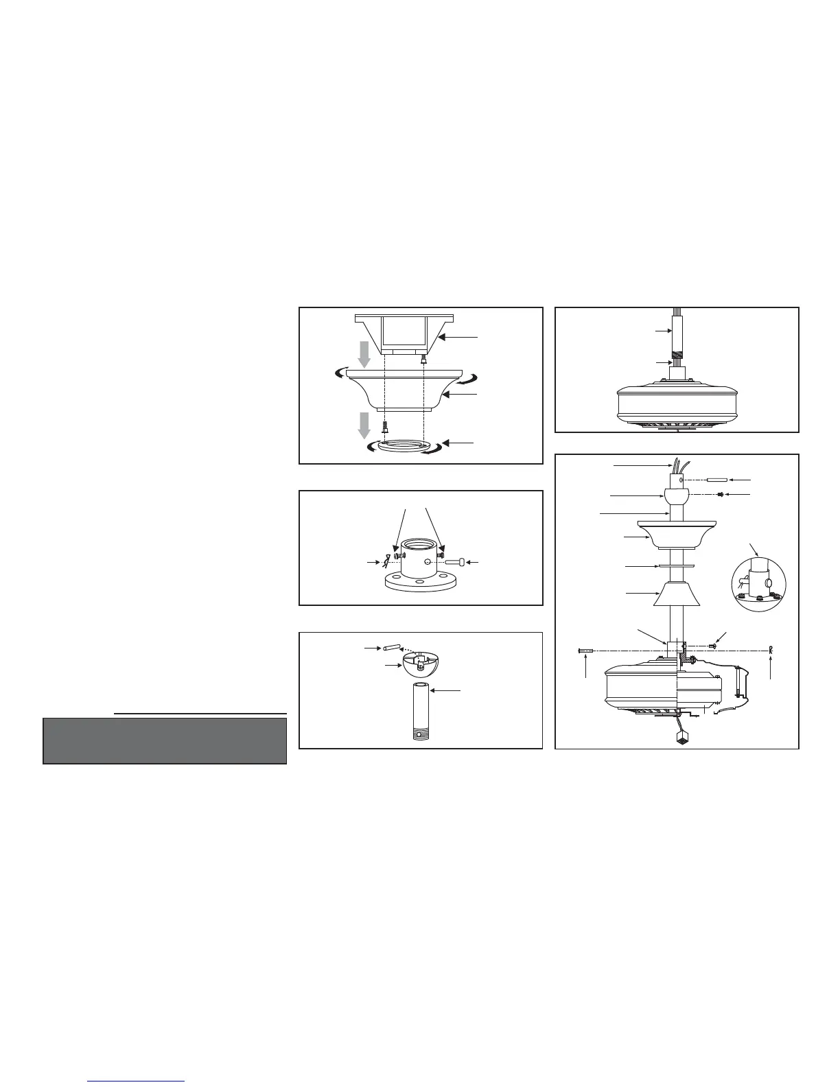 onto downrod. Carefully reinstall hanger ball