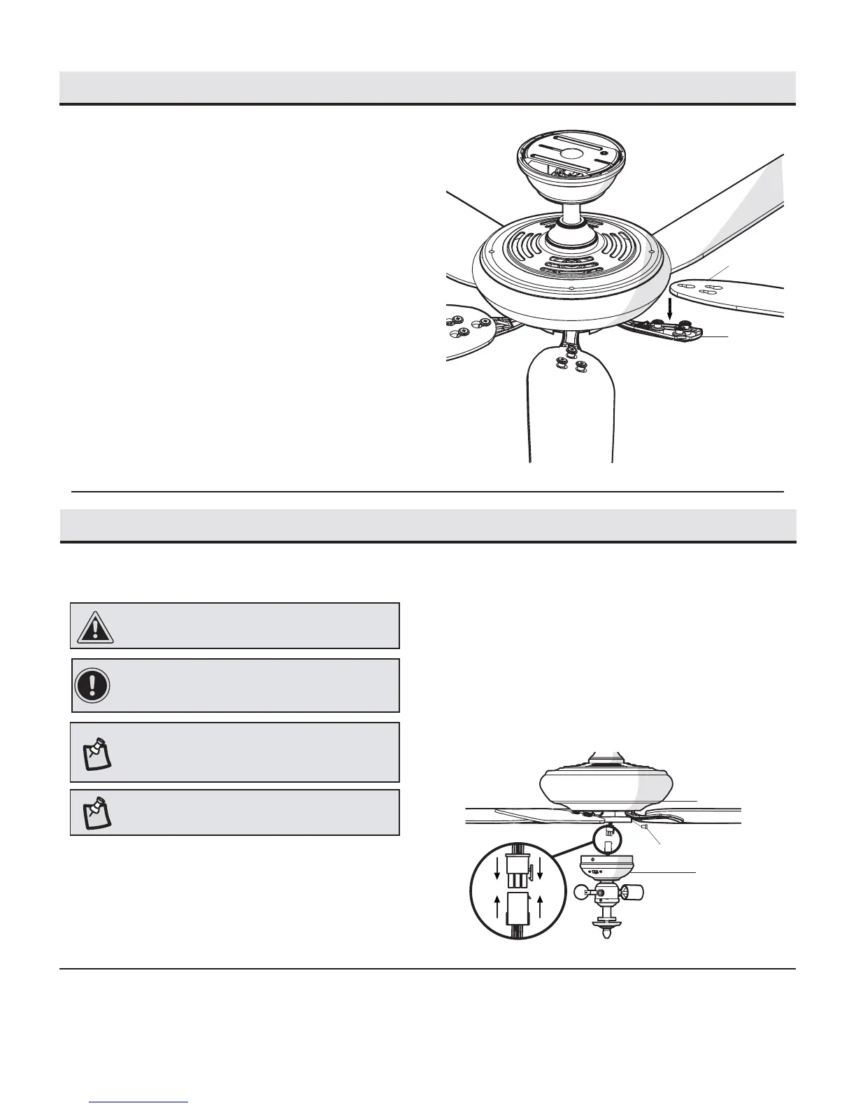 Ƒ Mount the fan blades (G) to the blade bracket (H) by aligning