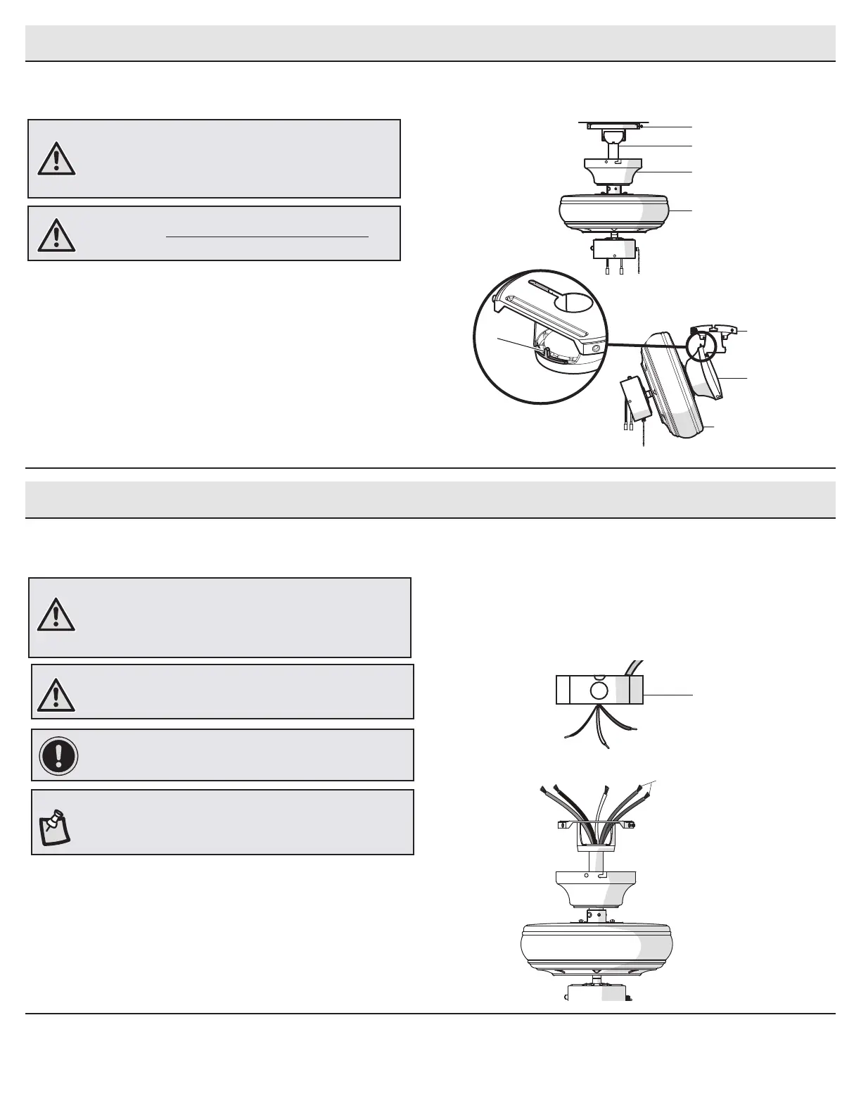 □ If using close-to-ceiling mounting, hang the fan on the hook