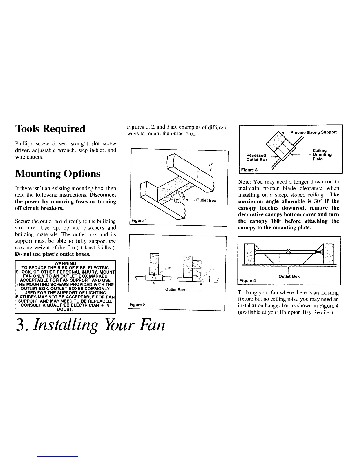 HAMPTON BAY 52-RDT - Installing Your Fan; Tools Required; Mounting Options