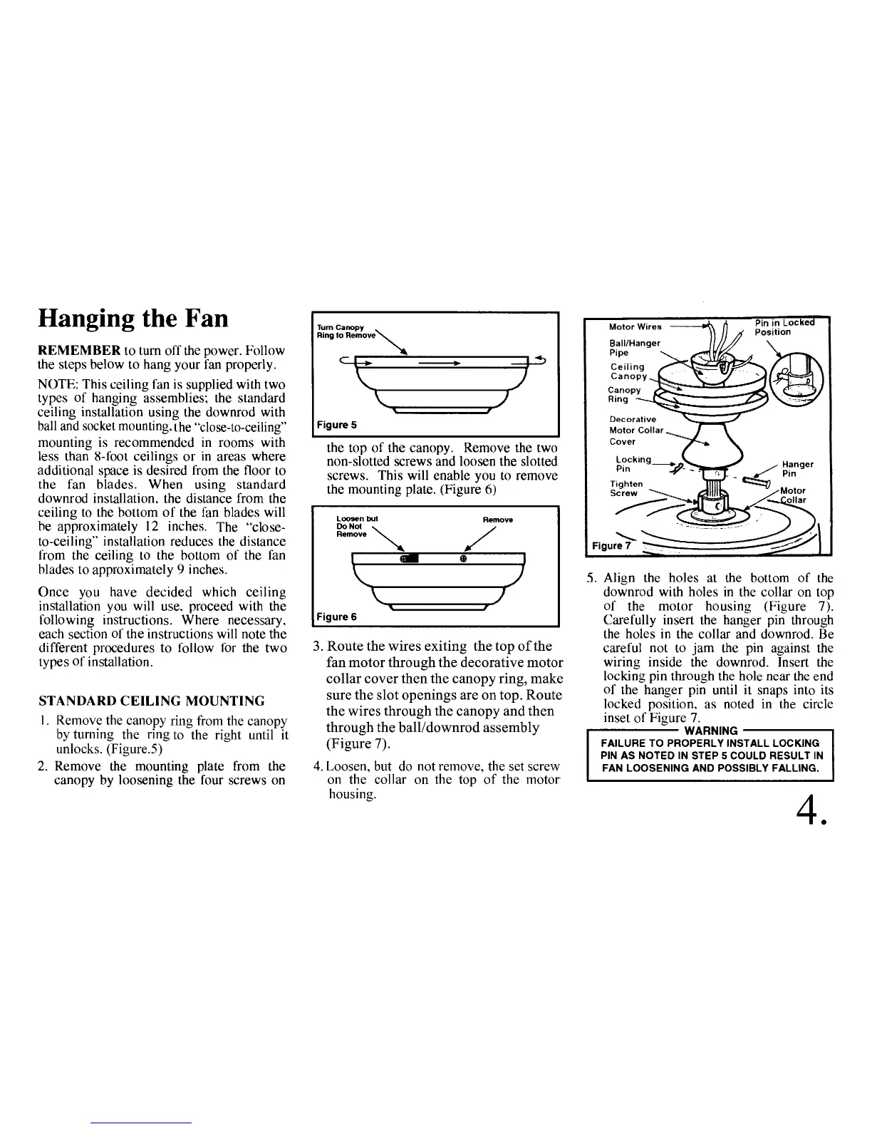 HAMPTON BAY 52-RDT - Hanging the Fan; STANDARD CEILING MOUNTING; CLOSE-TO-CEILING MOUNTING