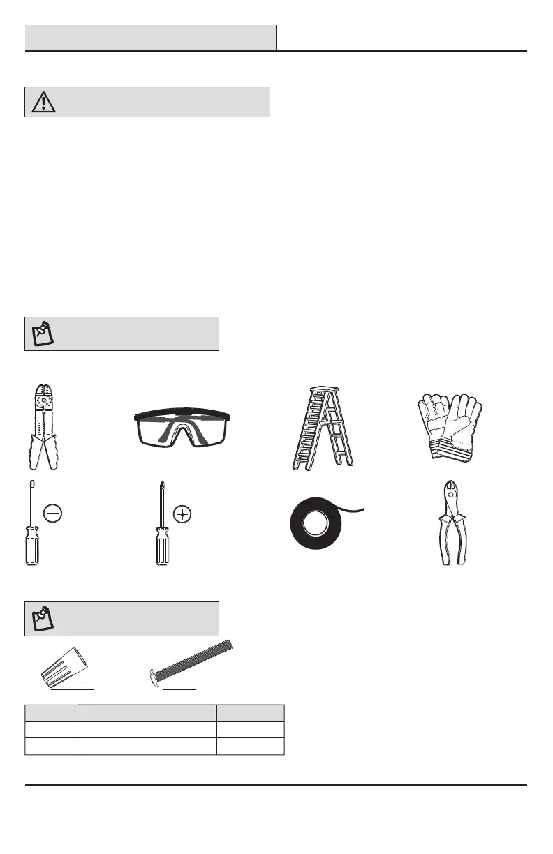 the electrical box screws included in the hardware kit. Screw them into the electrical box until there is about 3/8