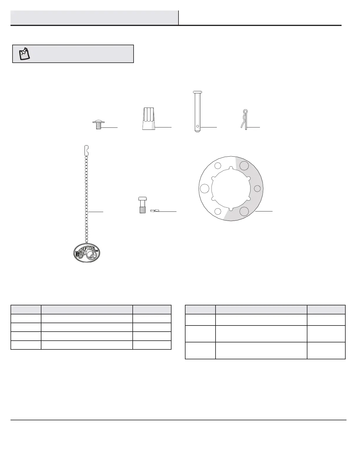 NOTE: Hardware not shown to actual size.