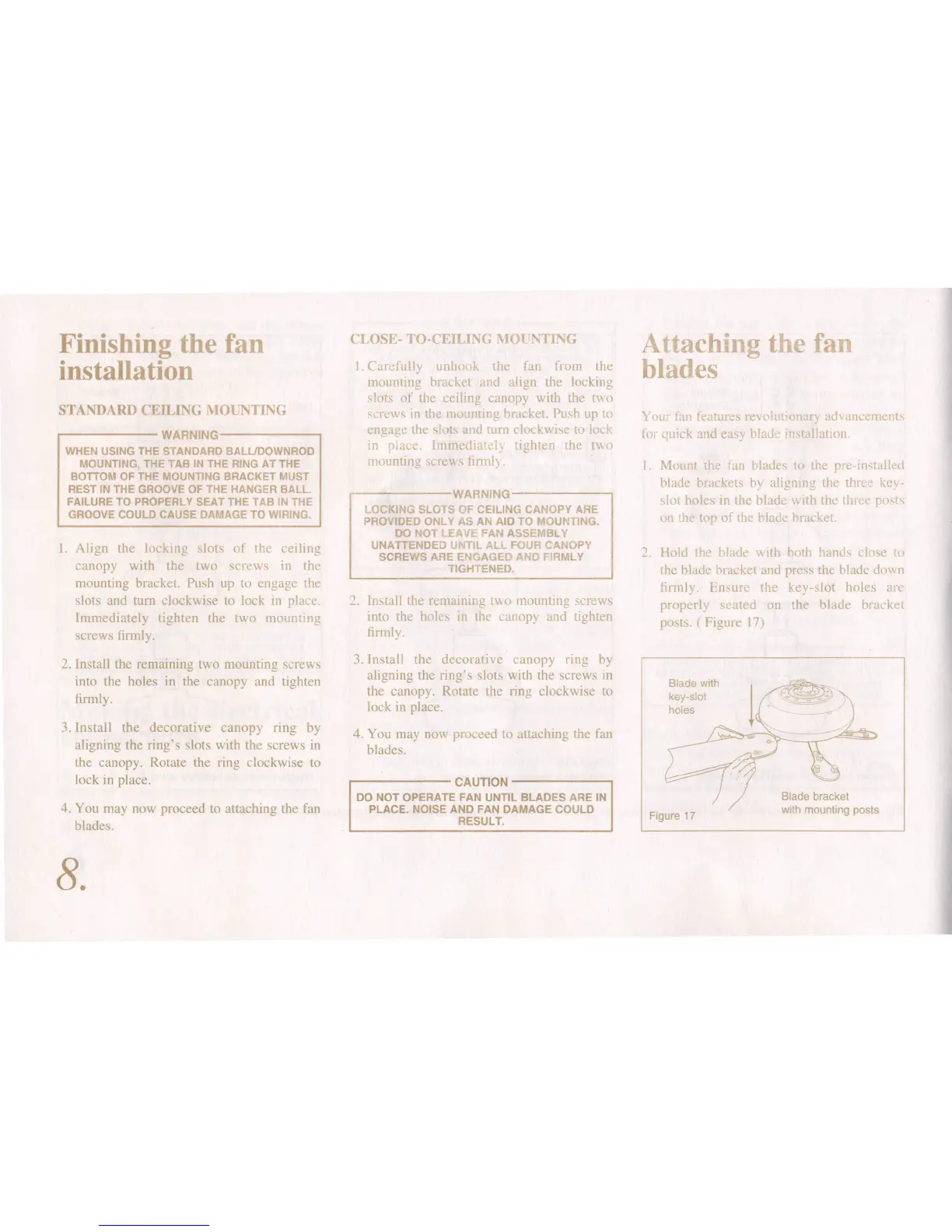 DO NOT OPERATE FAN UNTIL BLADES ARE IN