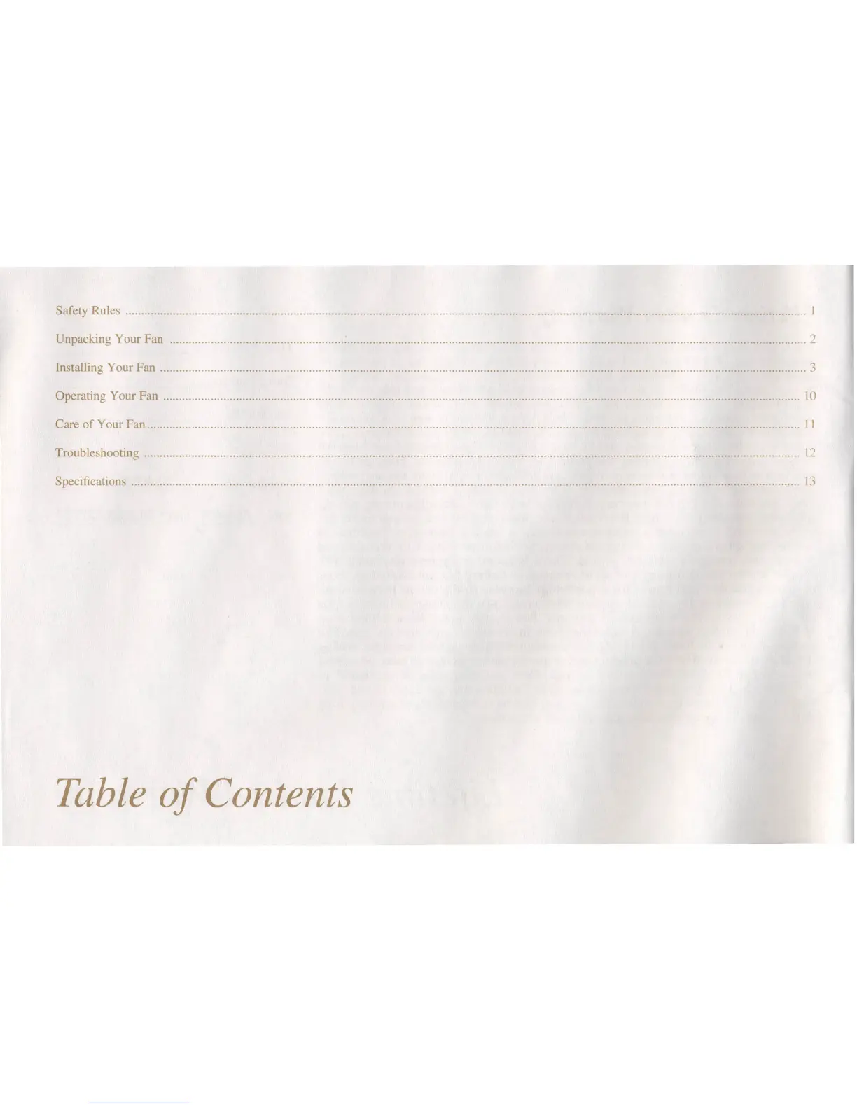 Operating Your Fan ""."."" ..".""""""""."""""""""."."." ..""."."""""""""""" 10