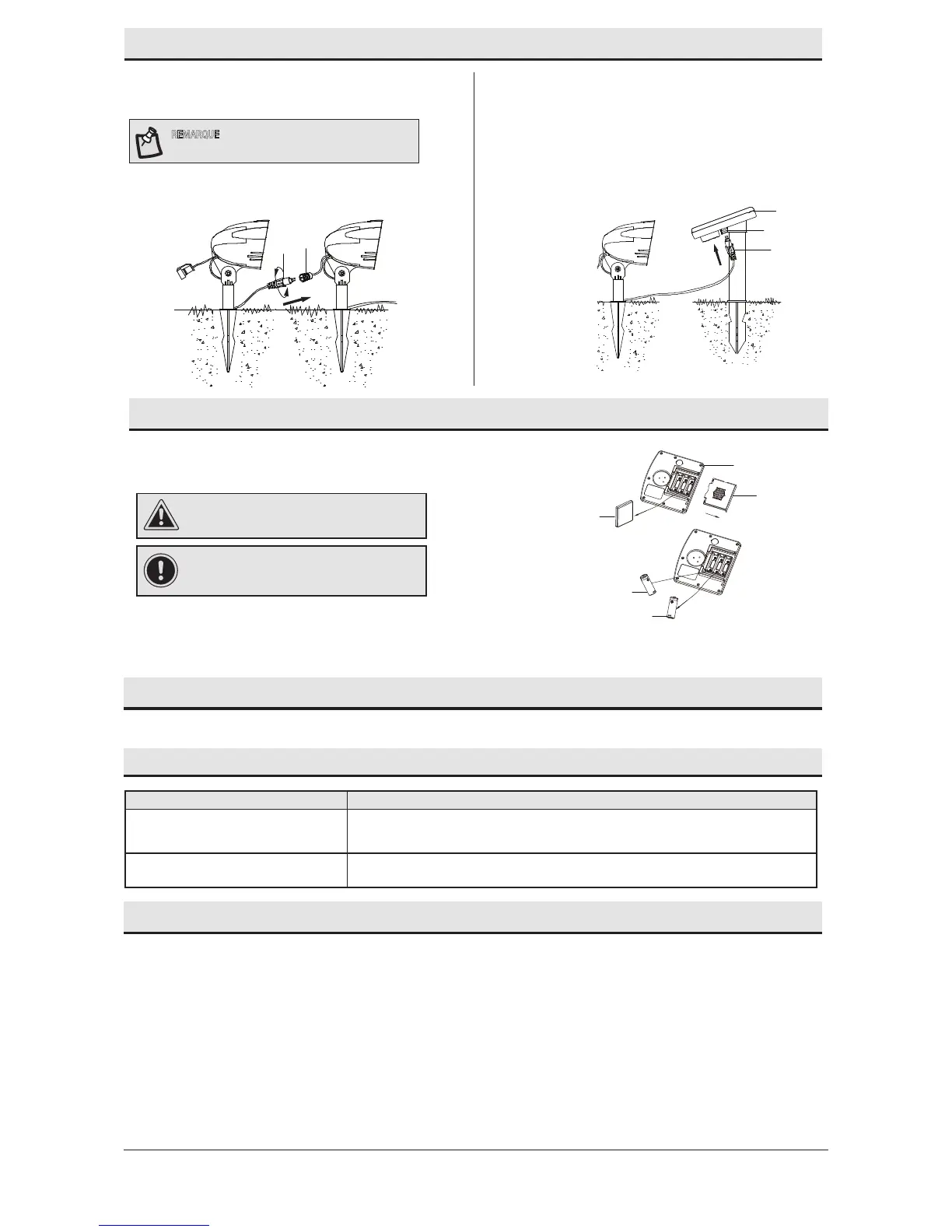 Les luminaires ne s'allument pas le soir. □ Le panneau solaire est installé trop près d'autres sources de lumière. Déplacez le panneau solaire