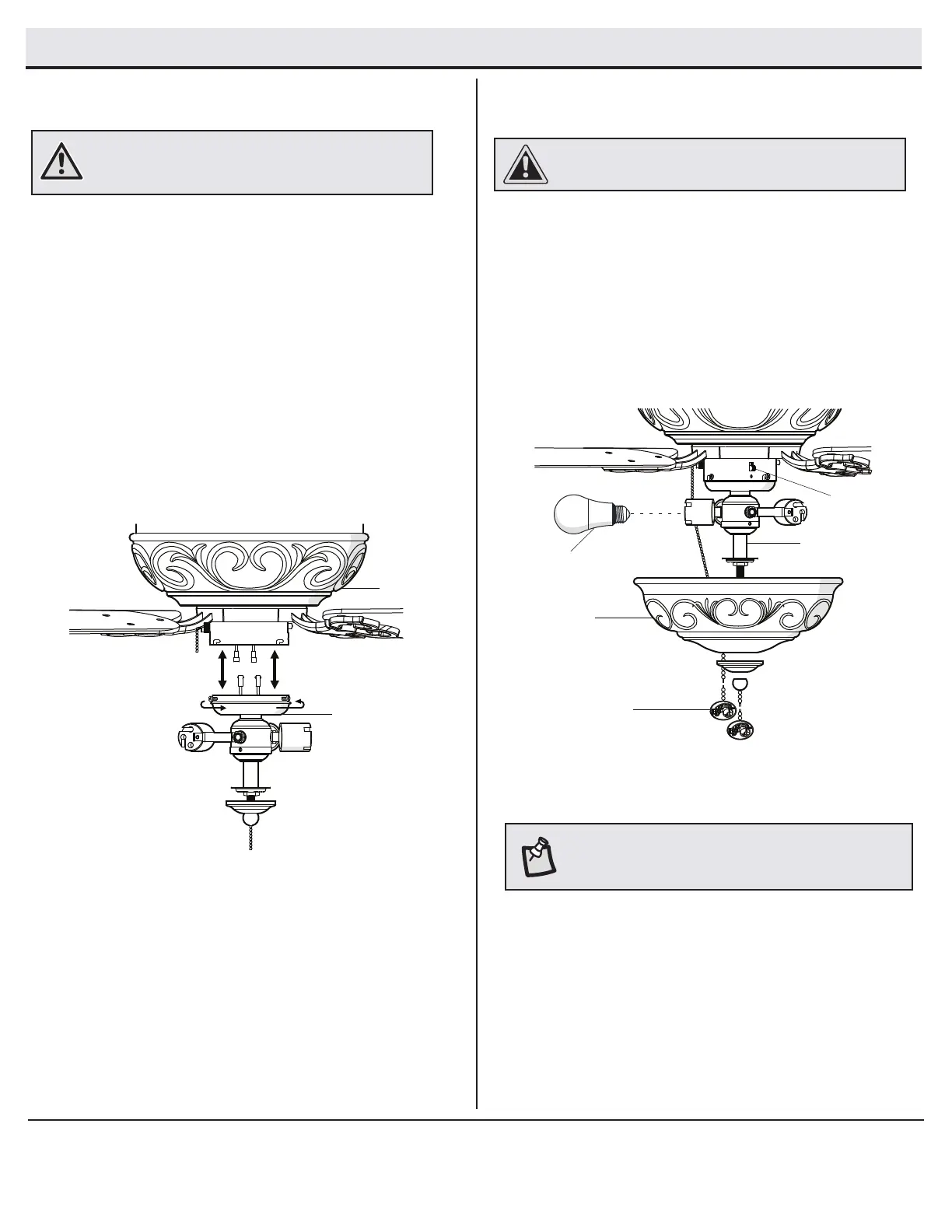□ Remove the bottom cover and the nial from the light kit
