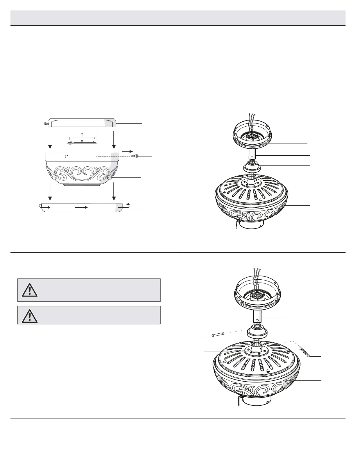 collar (M) and downrod (B). Be careful not to jam the hanger