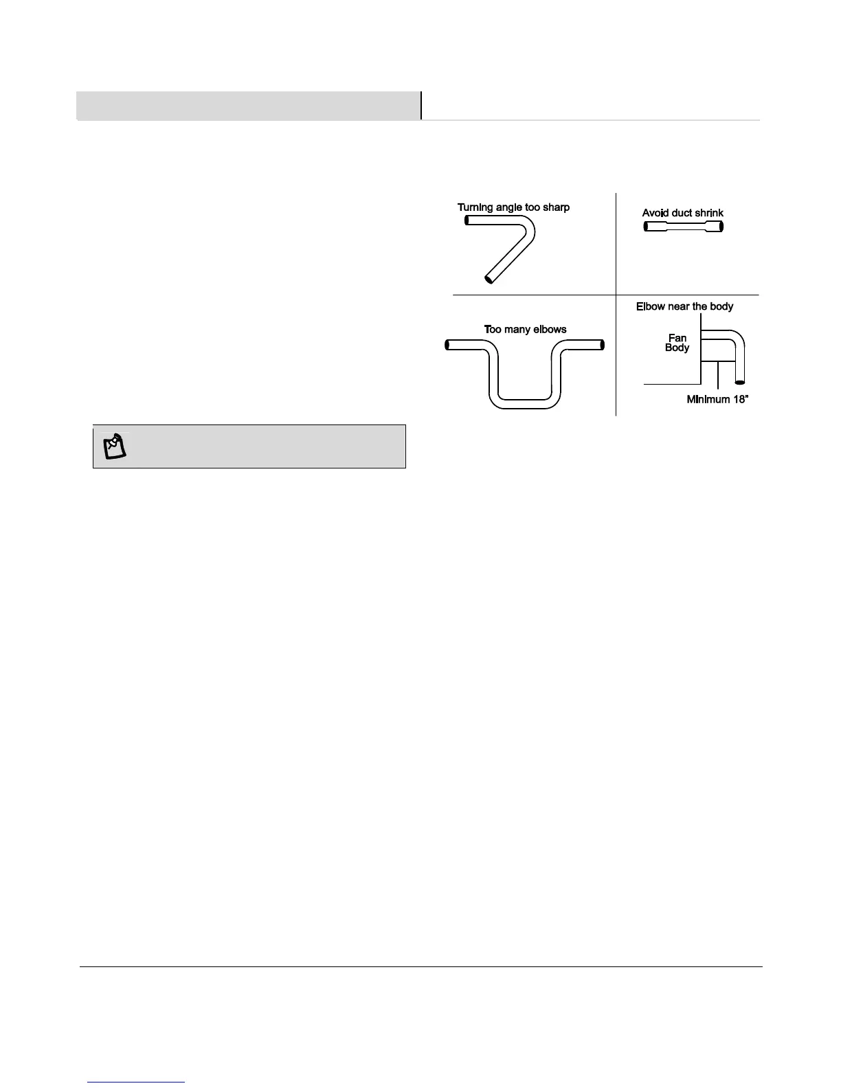 Do not install ventilation fan in areas where the duct